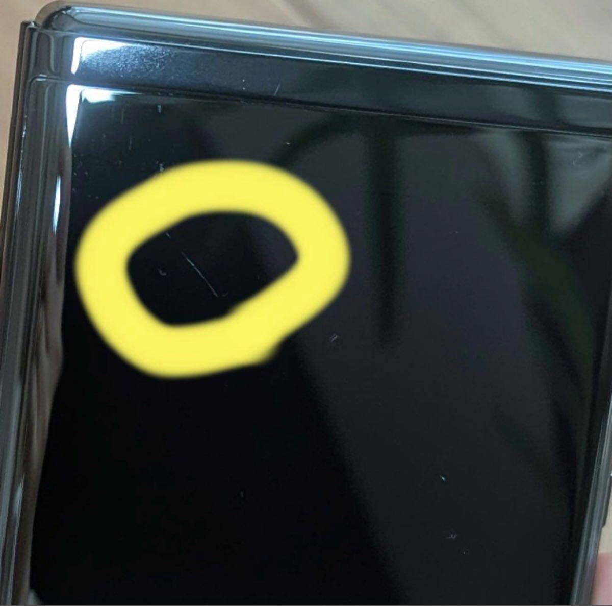 外側ディスプレイのガラス面に一つだけ良く探しみたいとわからない小さな引っ掛け傷があります。写真3枚目