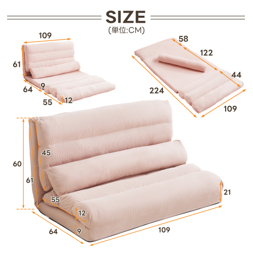 ★【広々寛げるでも、コンパクトソファベッド】横幅はシングルサイズ109cm。1人でゆったり寛ぐちょうど良いサイズ感です。リクライニングを倒してベッドして使えば、ゆったりサイズのローベッドとして使えます。座面のクッションを広げるだけで、ゆったり寛げるカウチソファに早変わり。急な来客ベッドに変えれば安心。クッションも付いているので枕としてご利用いただけます。張り地には厳選したファブリック生地を採用。サラサラの触り心地なので ベタつかずオールシーズンお使いいただけます。★【変幻自在に 自分好みの角度に】背面には6段階のリクライニング調節機能付き。細かな調節が可能なので、体勢に合わせてベストな角度で、ゆっくりと寛げます。さらにソファ時は座面を重ねてボリュームUP。上部のクッションは座った時のふかふか感や気持ちよさを追求。下部のクッションは少し硬めでより長く使用していただく為の 土台の役目を果たします。異なる硬さに設定したことで絶妙な座り心地、寝心地を実現しました。映画鑑賞などのゆったりしたい時はカウチスタイル、急な来客時などは簡易ベッドとして、様々なシーンに活躍します。ソファスタイルでもダブルクッションでゆったりと寛げいただけます。★【折りたたみギア付きでギア搭載】持ち運び &収納に便利|サイドにあるステッチ部分を押しながら背もたれをたおせばコンパクトに折りたたみ可能です。お掃除するときの持ち運びや来客時などすぐに収納できるのでとても便利です。★【ベストな角度を見つける背もたれ】背もたれには滑らかな6段階フォーカスギアを採用。身体が一番快適と感じるベストな位置に合わせられるよう、角度調整ができます。★【安定性と快適性を兼ねた構造】座面にはもっちりふかふか圧倒されそうなボリューム感を使い、適度な弾力とクッション性を持たせながら、ベッドとしての使用でも約150kgの耐荷重があるので安全にご使用いただけます。女性の方でもらくらく移動可能。★【完成品でお届け】※サイズの誤差は多少発生します。ご了承下さい。※詳細な商品サイズは画像一覧にございます。※商品の素材・染色の性質上、摩擦・水濡れ・汗などによる色移りが発生する場合がございますのでご注意下さい。色移りが発生した場合は、中性洗剤などをご使用いただき洗い流して下さい。ソファベッドは最長224cmまで伸ばすことができ、1~2人で十分に使用できます。多様なスタイルに変化し、日常のニーズを満たします。***照明環境やディスプレイ設定により、画像と実物の色味に差が生じる場合があります。