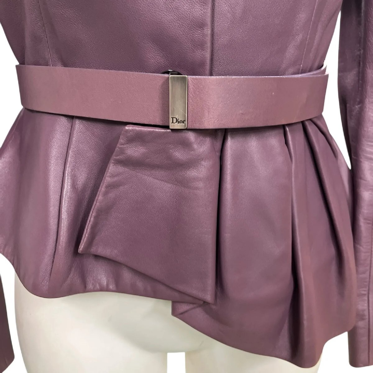美品 クリスチャンディオール Christian Dior ノーカラー ラムレザー ジャケット 羊革 リアルレザー S5M188