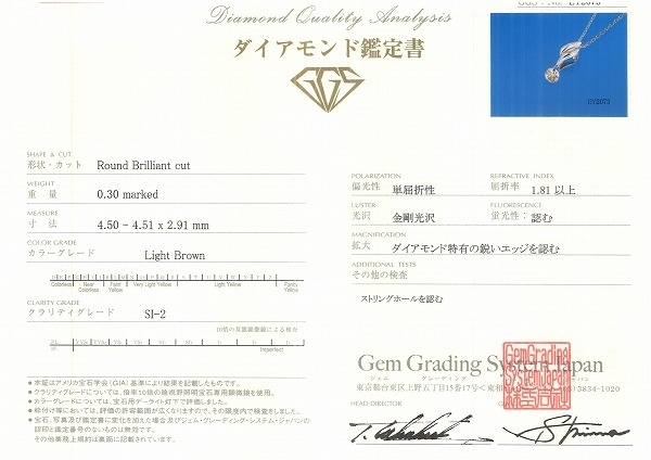 | K18WG ネックレス ブラウンダイヤ 0.30 SI2 鑑定書 総重量約2.2g 約44cm 中古 美品 送料無料 | |