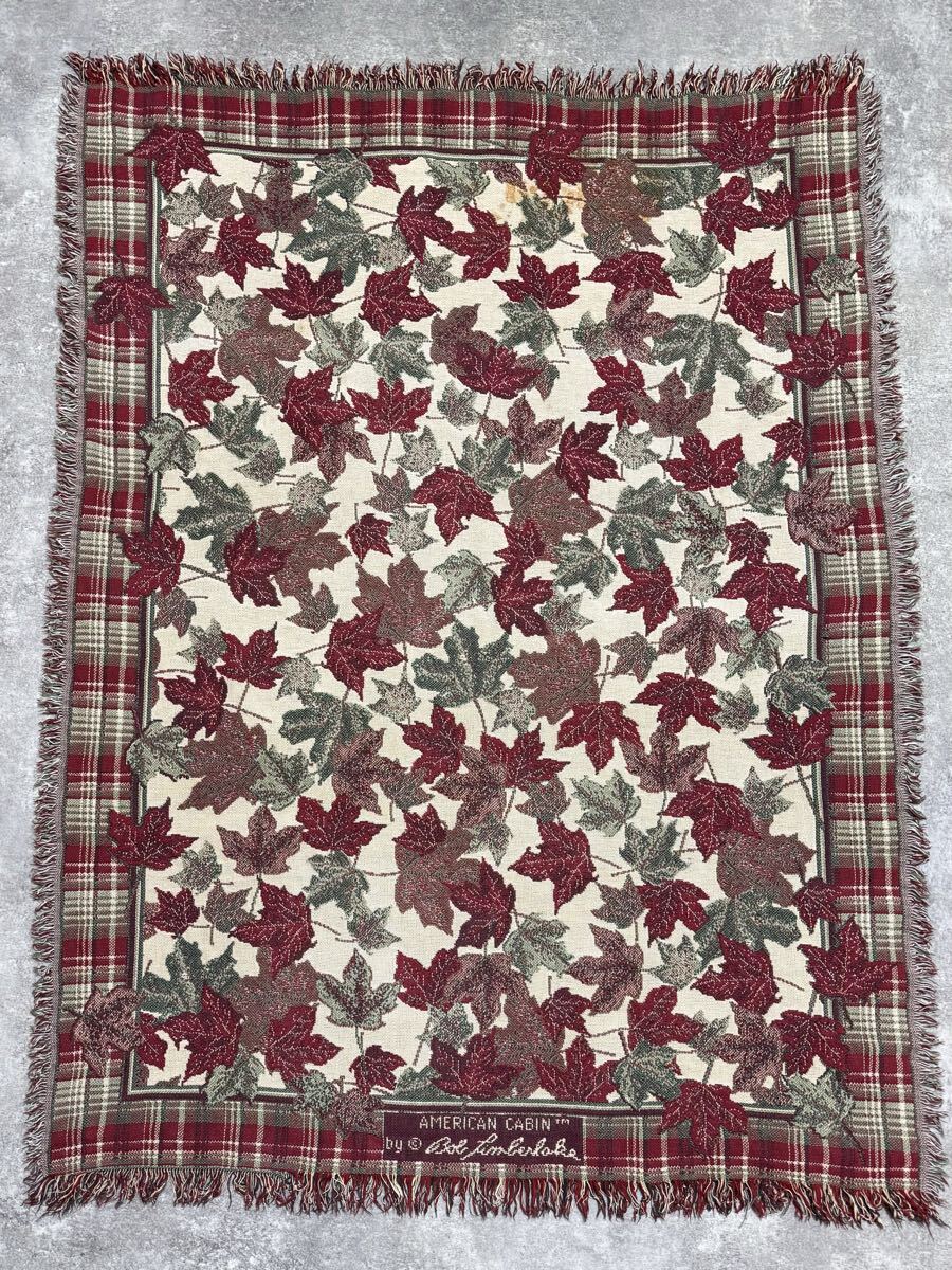 USA製 紅葉 もみじ レトロ ラグ ソファーカバー 166×122