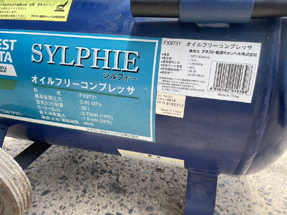 動作確認済★アネスト岩田コンプレッサ★オイルフリーコンプレッサ★SYLPHIE★シルフィー★FX9731
