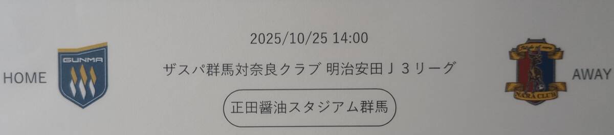 2025年10月25日 14:00 ザスパ群馬 対 奈良クラブ 1枚 連番 指定席 メインスタンド チケット サッカー jリーグ a
