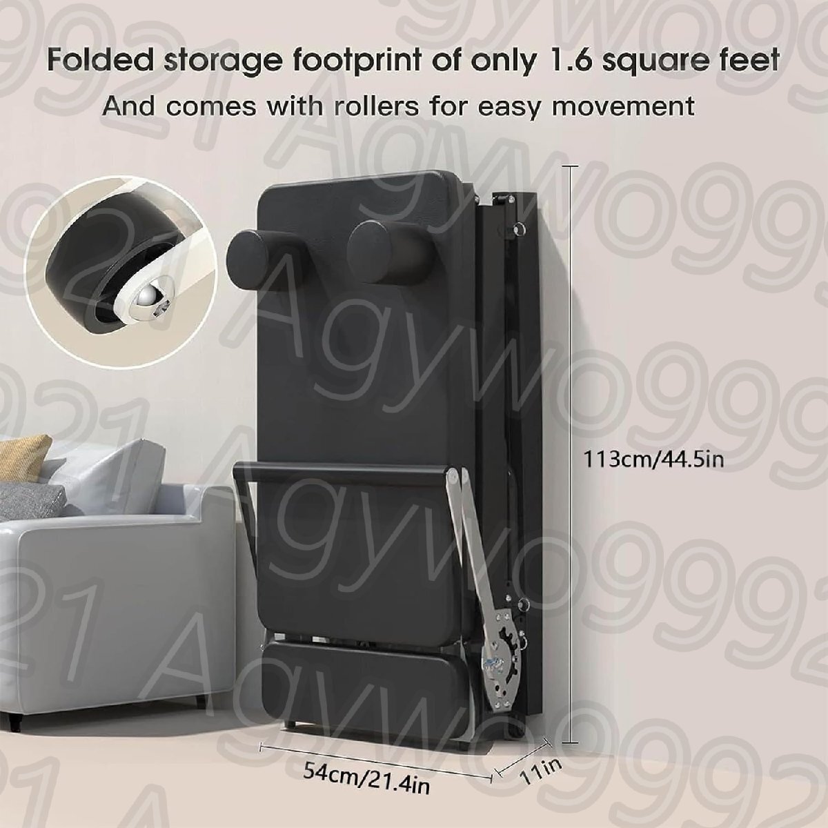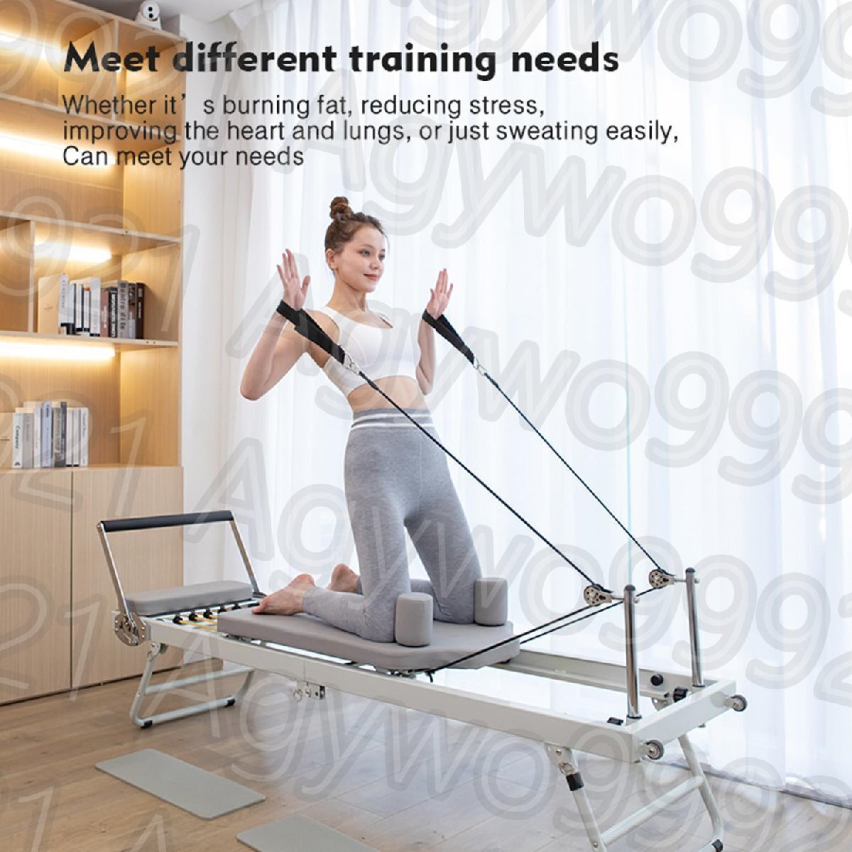 【折りたたみ可能なフレームと内蔵ホイール】初心者用ピラティスリフォーマーは簡単に折りたたんで収納できます。内蔵ホイールによりトレーニング機器の移動が簡単になり、持ち運びや保管が簡単になります。