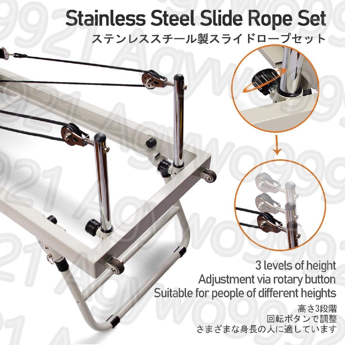 【調整可能なスプリングとスライドロープ】-ピラティスコアベッドには高弾性の調整可能なスプリングが装備されており、トレーニングの強度に応じて抵抗を調整できます。 また、さまざまな身長のユーザーが使いやすいように、3段階に調整可能なスライディングロープシステムも備えています。 フィットネスの目標を簡単かつ便利に達成できます。