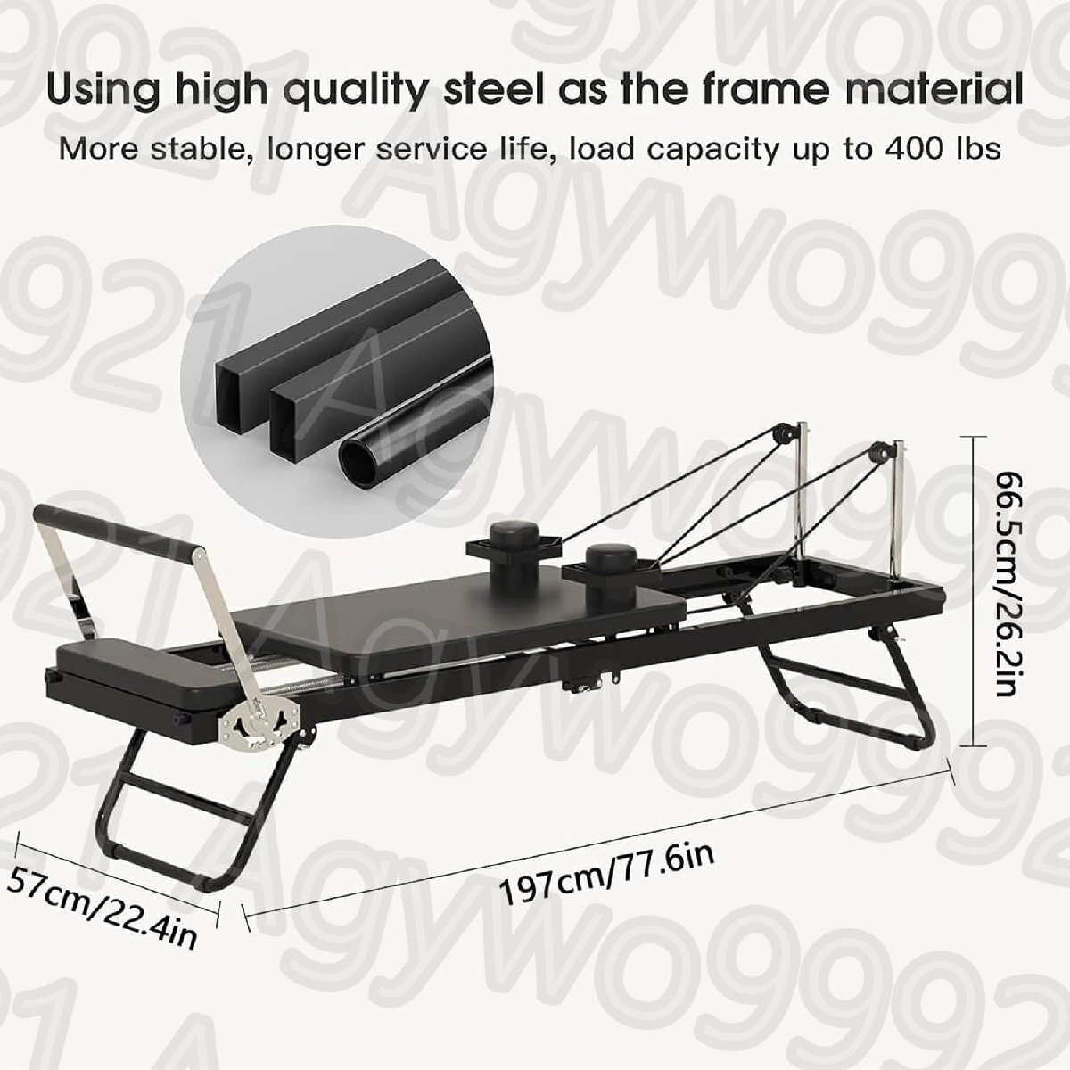 【多機能ピラティスベッド】-ピラティスコアベッドは多機能フィットネス機器です。この機器は、フィットネス目標の達成に役立つように、さまざまな筋肉グループをターゲットにして改善するように設計されています。 全体の寸法は197 x 57 x 72.5 cm、重量は約32 kgです。 約200ポンドをサポートします。