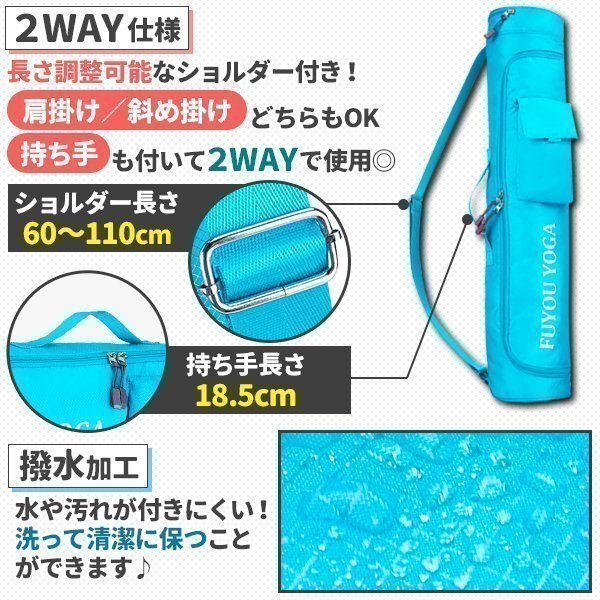 ヨガマット バッグ ヨガマットケース ブルー 青 ポケット付き 2way 撥水 軽量 ショルダーバッグ ハンドバッグ 手持ち 収納 ケース