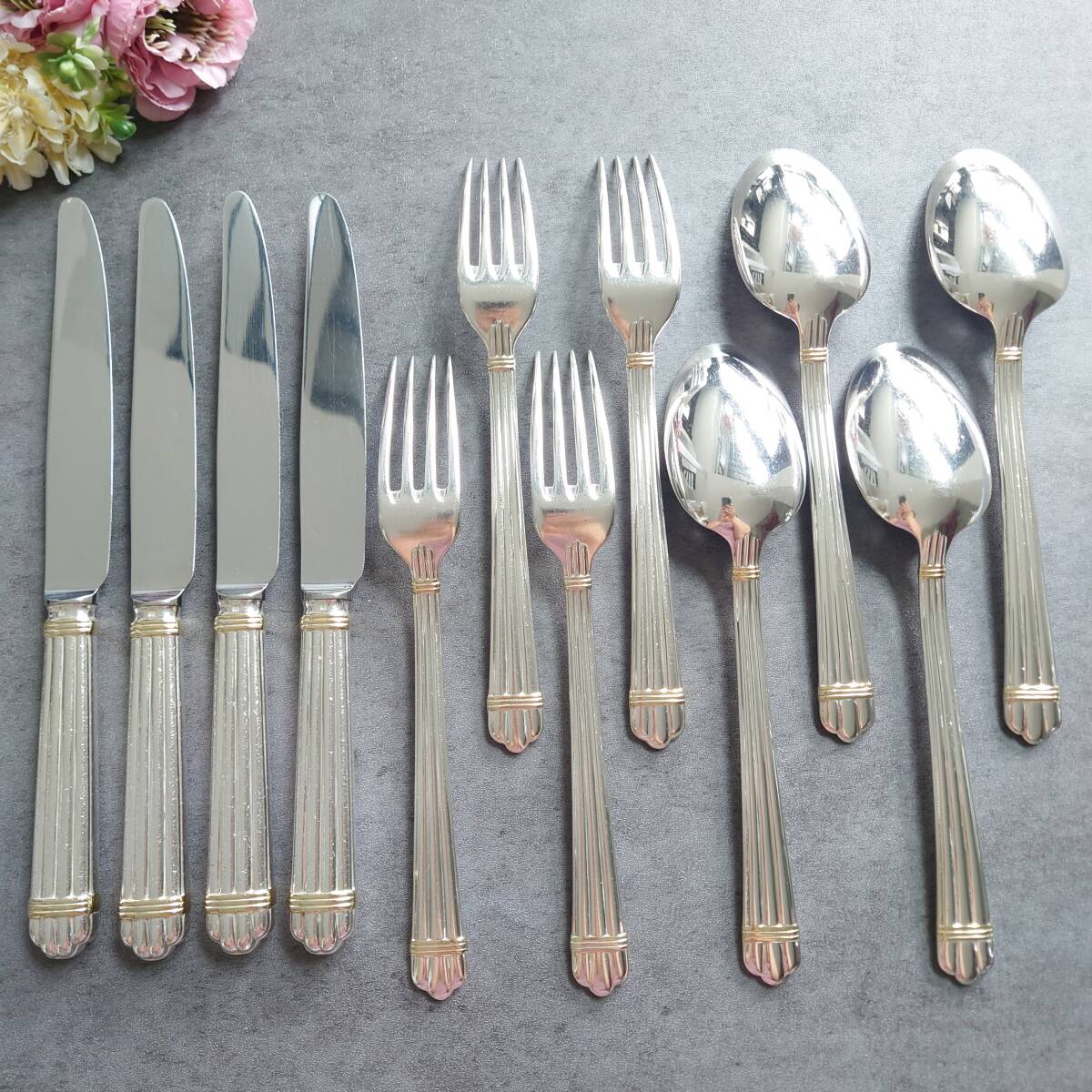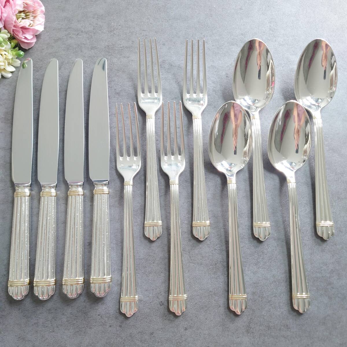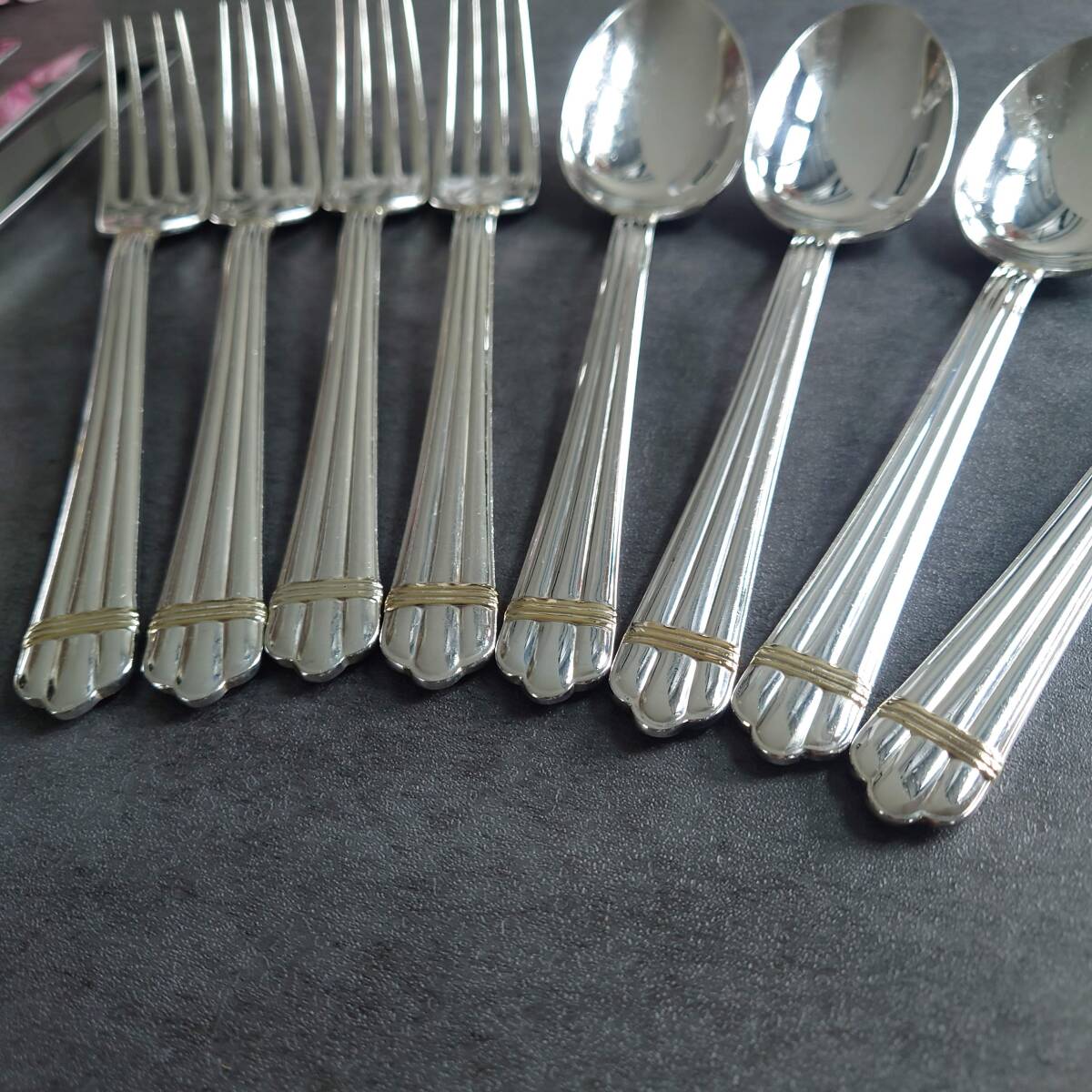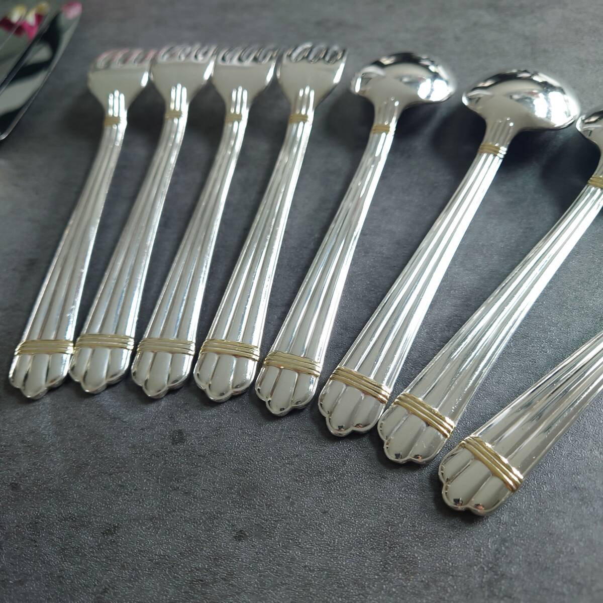 カトラリー同士の接触傷や使用に伴う小傷、お手入れによるスレなどが全体的にあり、いわゆる『ムーンシャイン』と呼ばれる状態です。