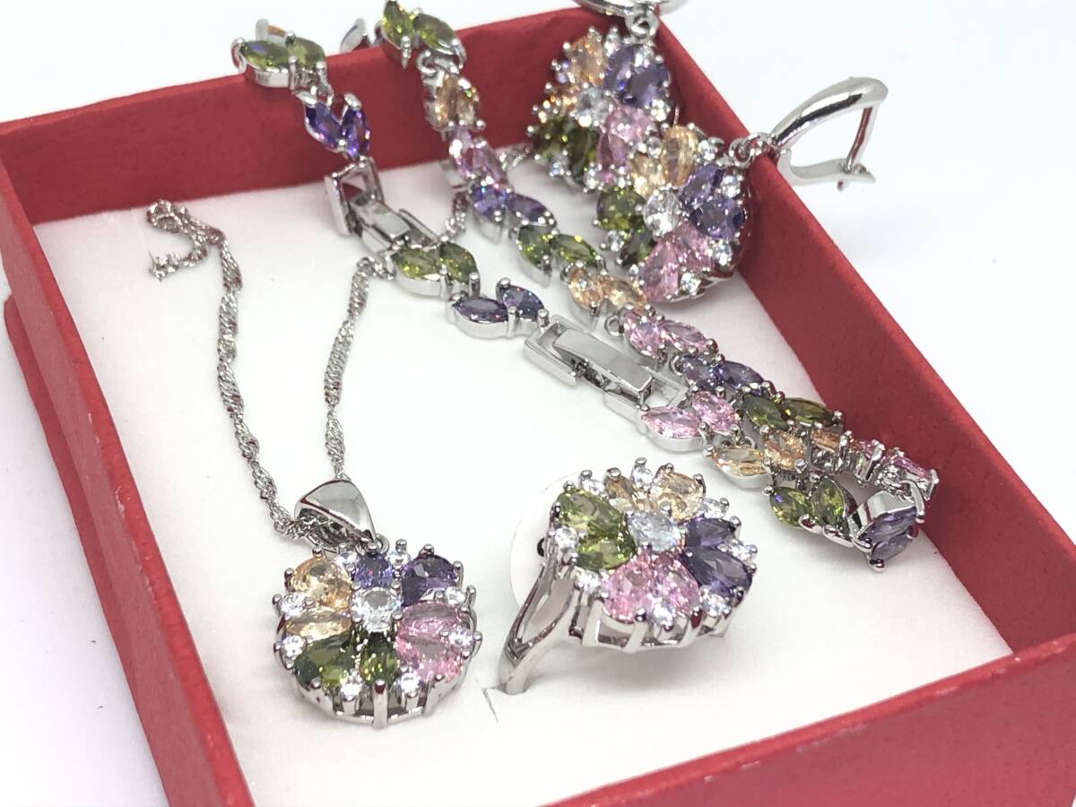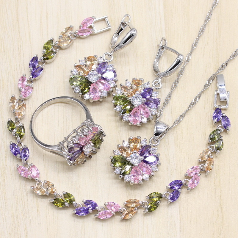 4点セット★多色ジルコニアダイヤモンド ブレスレット指輪ピアス ネックレス