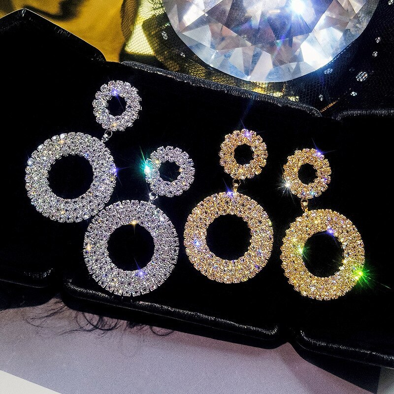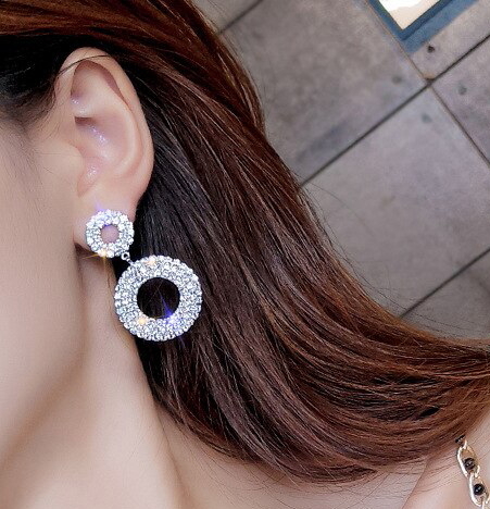 ゆらゆらキラキラのラインストーン ダイヤモンド★丸型 ピアス 両耳 シルバー