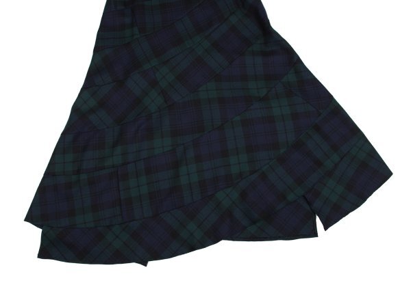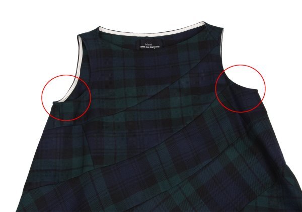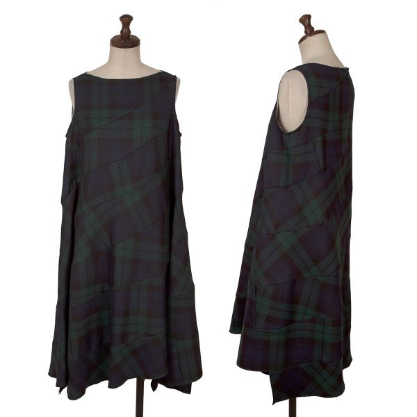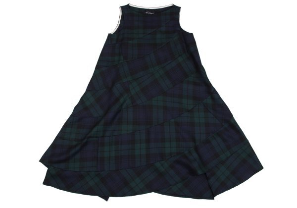 | トリココムデギャルソンtricot COMME des GARCONS ウール切替デザインノースリーブチェックワンピース 紺緑S |