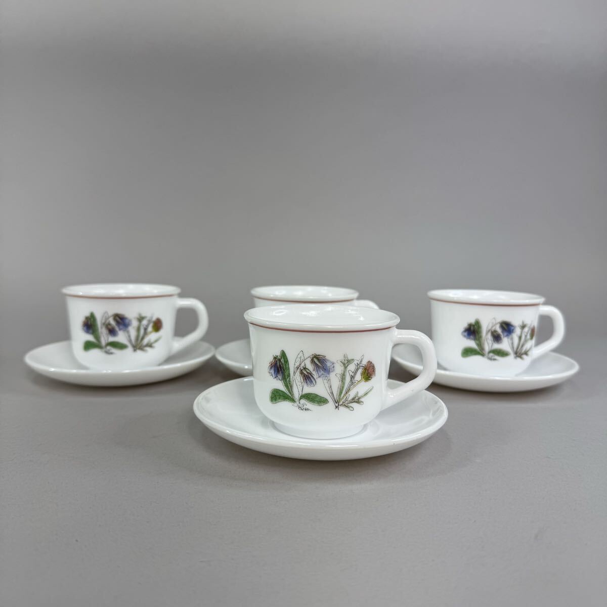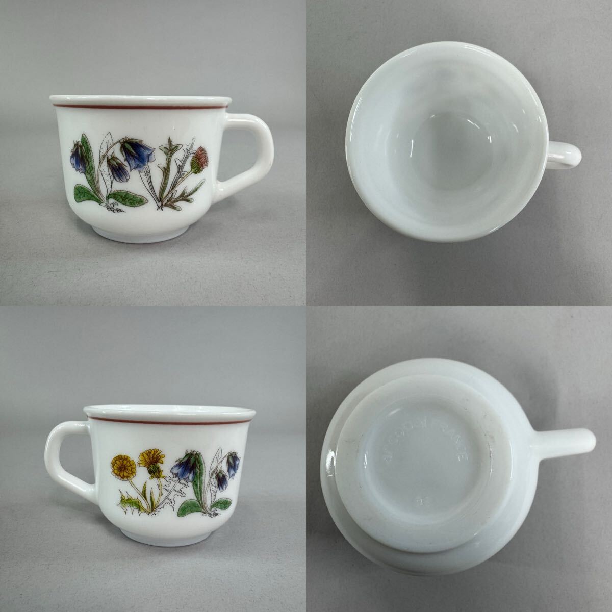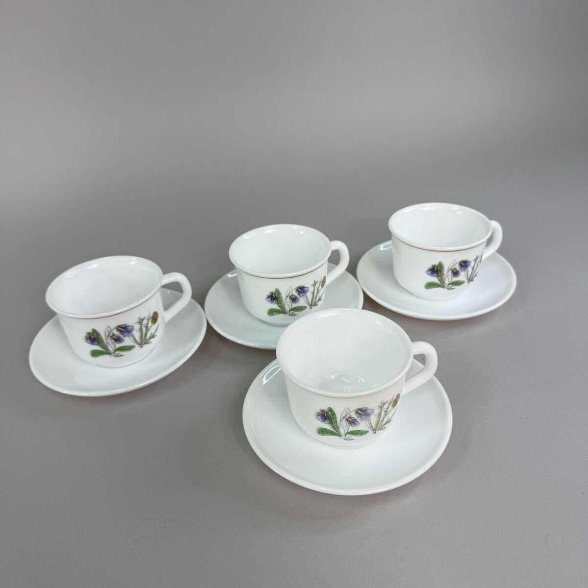 ビンテージ フランス アルコパル arcopal ミルクガラス カップ&ソーサー 4客セット レトロになります。