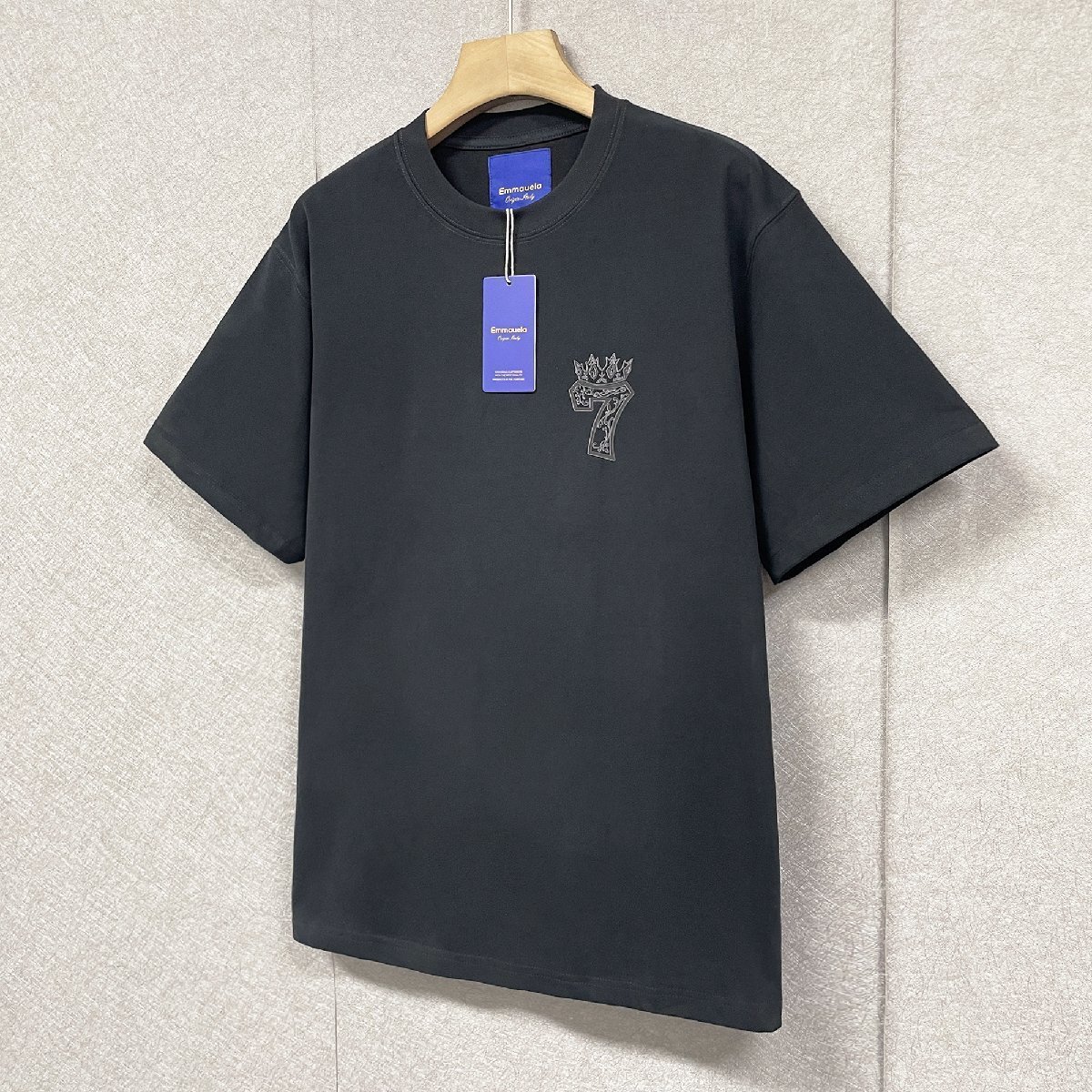 上品・半袖Tシャツ 定価2万◆Emmauela・イタリア・ミラノ発◆コットン100% 通気 薄手 吸汗 個性 スウェット プルオーバー メンズ 夏服 2XL/52サイズ
