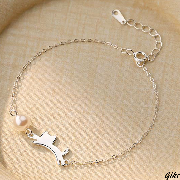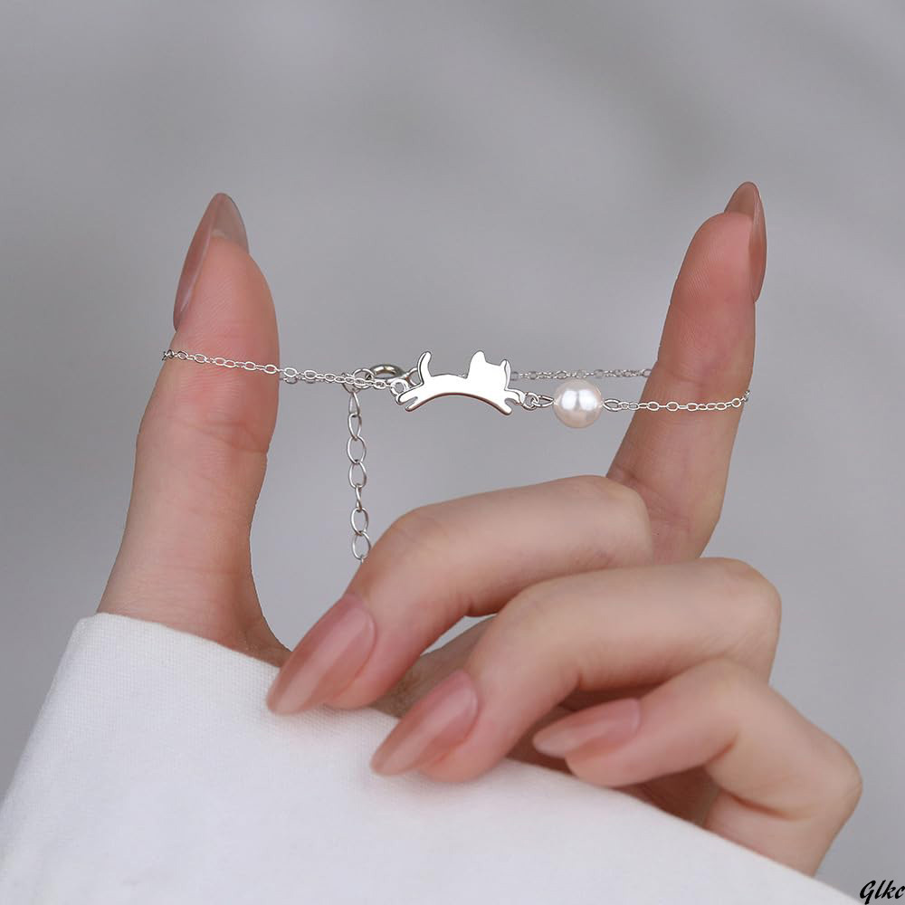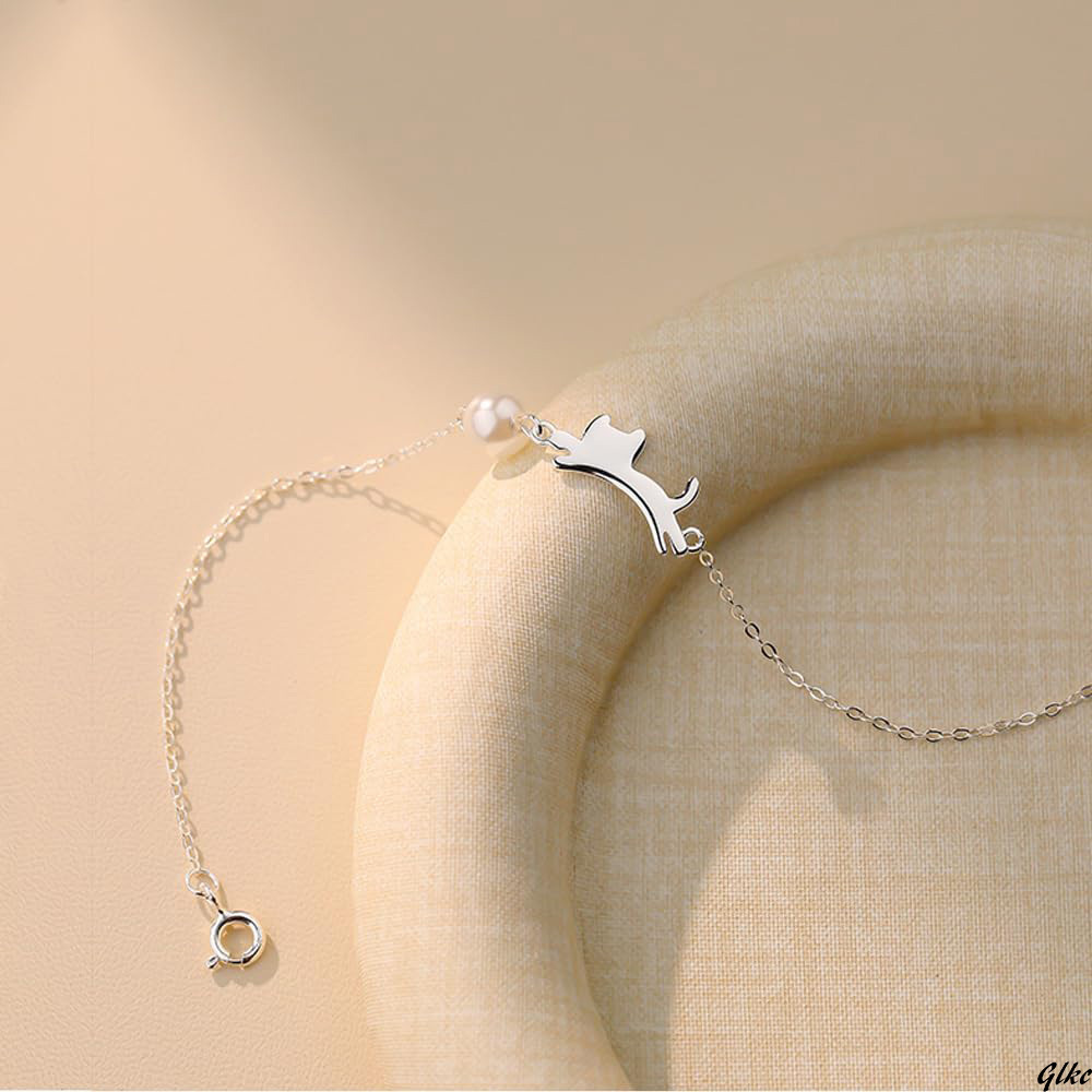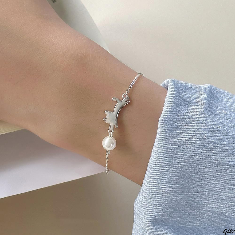 【レディースジュエリーとして日常使いから特別な日まで活躍】 猫ブレスレット 長さ15cm シルバー925 パール ギフトボックス付き