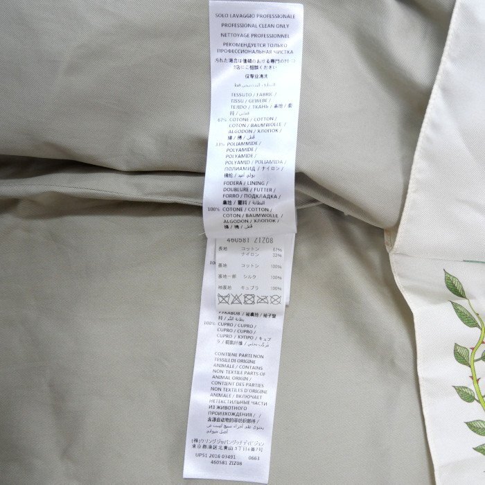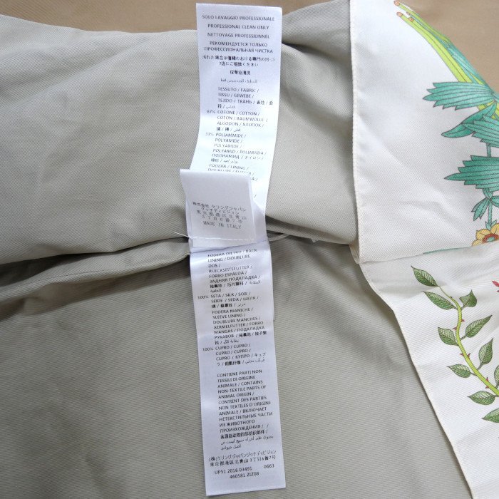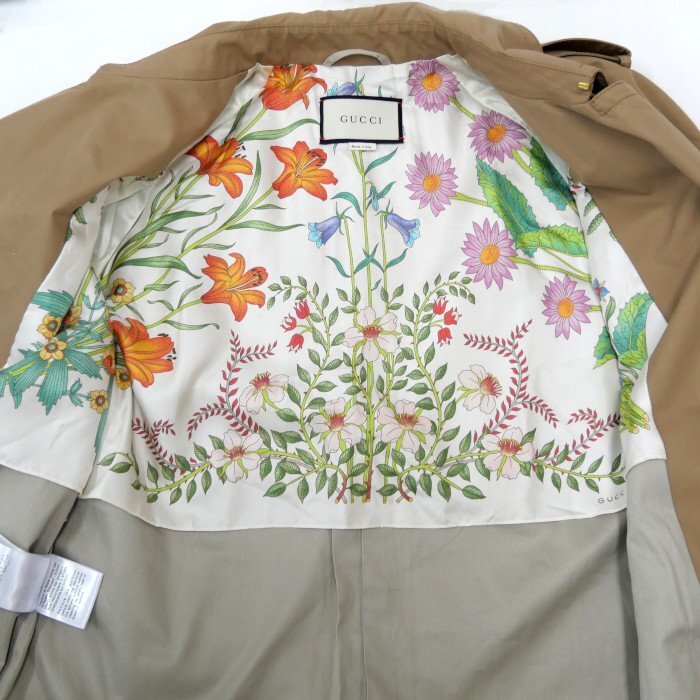 GUCCI グッチ コットン ナイロン GGパールボタン トレンチコート ベージュ 46 レディース 裏地:フローラ柄 です。 ベーシックなデザインにパールボタンがフェミニンなトレンチコートです。パールボタンのGGロゴが高級感を醸し出してくれます。フローラ柄のお洒落な裏地付き。コーディネートをさり気なくランクアップしてくれそう。 薄っすらとした白いヨゴレがございますが、大きなダメージはなくまだまだ綺麗にご使用いただける商品です。皆様のご落札をお待ちしております。 |