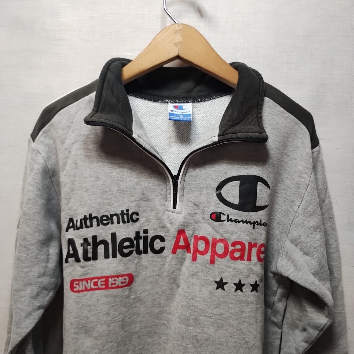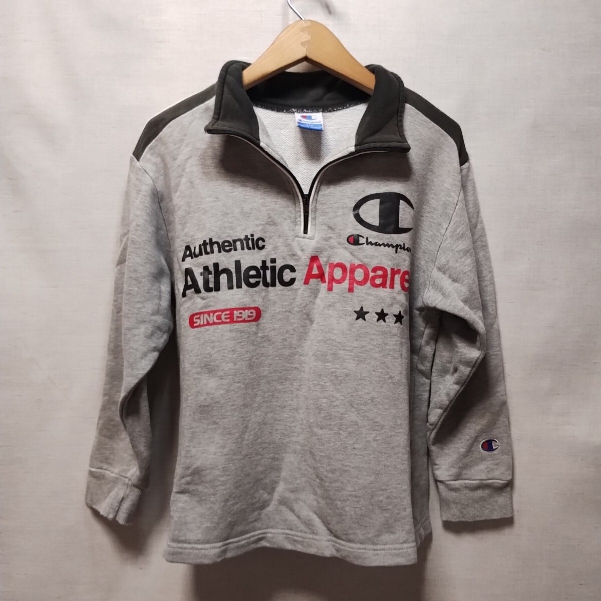 チャンピオン Champion子供服キッズ男&女の子杢グレー色ハーフジップスウェットシャツ130