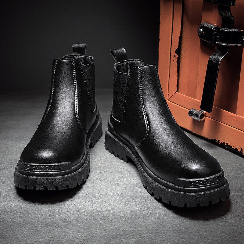 サイドゴアブーツ メンズ チェルシー ブーツ ハイカット フェイクレザー靴 おしゃれ 人気 黒25cm