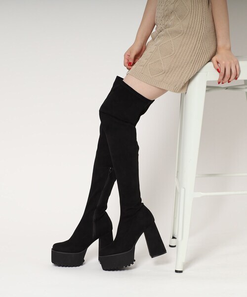 参考商品名:スクエアトゥ厚底ストレッチニーハイブーツ