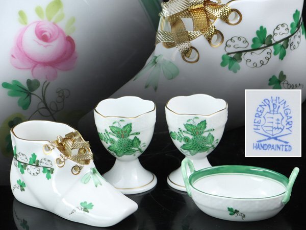 サイズ(約) 靴:高さ5.2㎝ 横10㎝ 奥行4.5㎝ 重量85g エッグスタンド:高さ6㎝ 口径4.5㎝ 重量39g/41g バスケット:高さ3.5㎝ 横8㎝ 奥行5.5㎝ 付属品 - 本物保証 ヘレンド ミニチュア エッグスタンド バスケット他 4点 ウィーンの薔薇 アポニーグリーン パセリ ヘレンドミニチュア4点セットでございます。 目立つダメージなく程度良好です。 詳細画像でご確認ください。 |