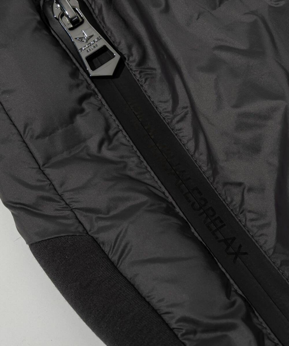ポケットの止水ファスナーにはトーンオントーンでブランドロゴをプリント。