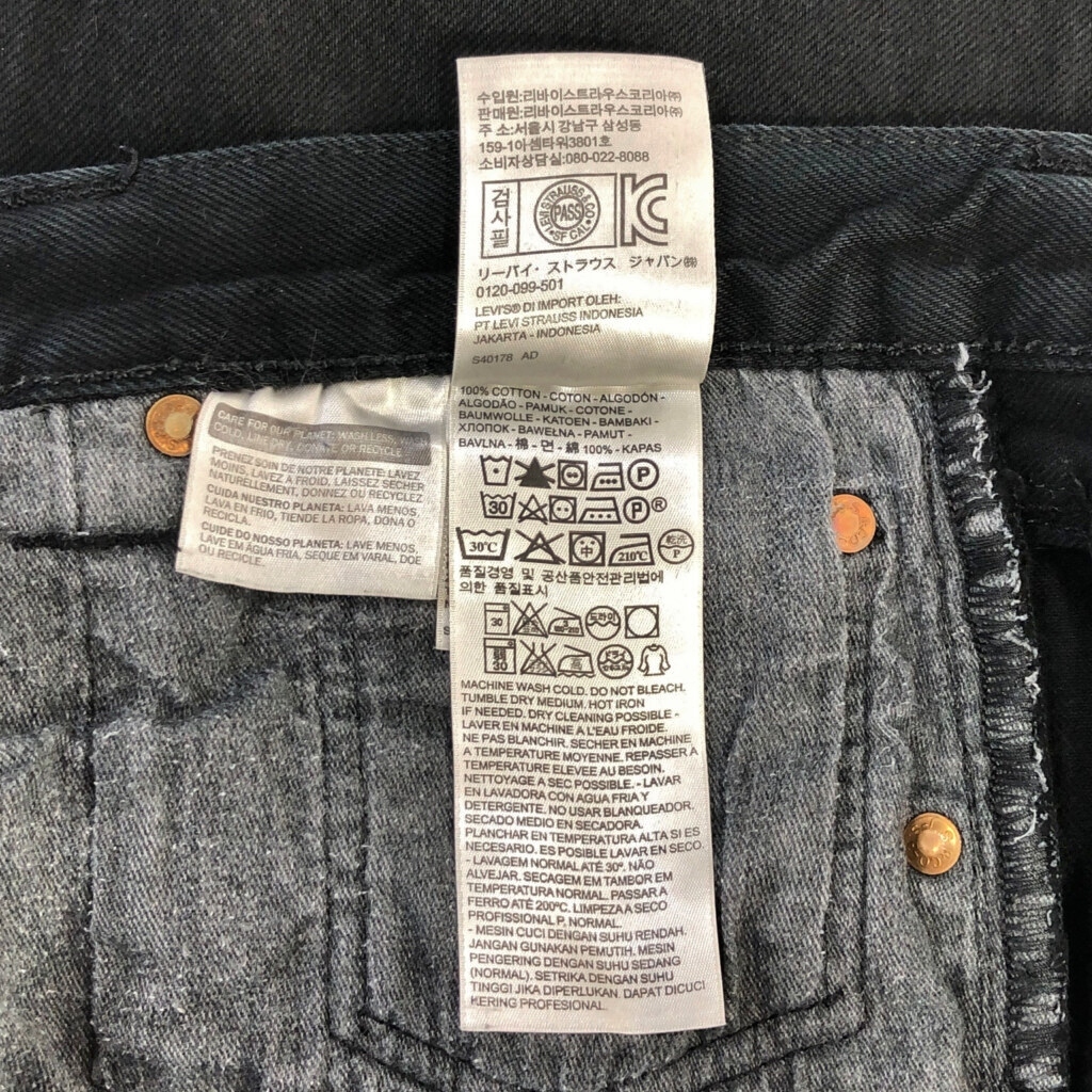 | 【商品管理番号】 V0874 【ブランド】 Levi's/リーバイス 【サイズ】 W32 L30 【実寸サイズ】 ウエスト:約84cm 股上:約28cm 股下:約73cm わたり幅:約31cm 裾幅:約21cm 【主な素材】 表地 : コットン 【色】 ブラック 【仕様】 501 【状態】 キズ:裾 | |||