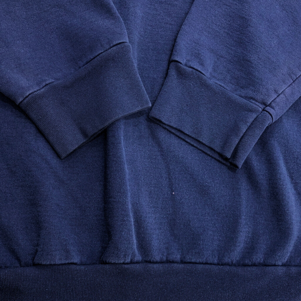 | 【商品管理番号】 V1110 【サイズ】 XL 【実寸サイズ】 肩幅:約68cm 着丈:約74cm 身幅:約74cm 袖丈:約59cm 【主な素材】 表地 : コットン 【色】 ネイビー 【仕様】 生産国 : USA製 90年代 【状態】 汚れ:裾 特記事項:色褪せ、リブ劣化 | |||