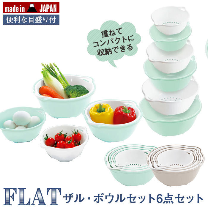 | 商品説明 | すべてのザル・ボウルを重ねると高さがフラットになり、場所を取らずにスッキリ収納できます。 |