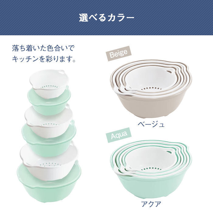 | 商品名 | ボウルセット 6点セット プラスチック キッチンツール ザルセット アクア M5-MGKFU00001AQ |