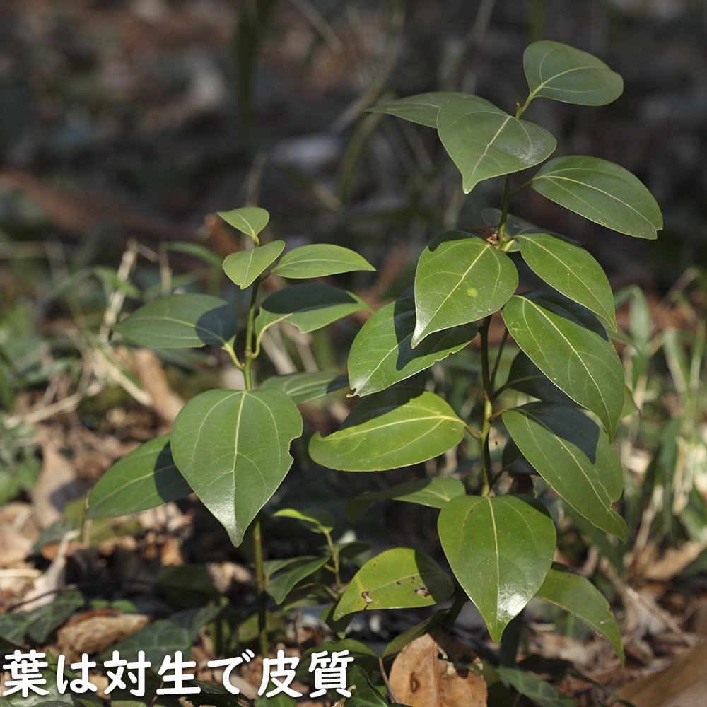 ヤブニッケイは樹高15m程になる常緑高木です。葉は緑色で裏は白いのが特徴で、大きさは15cn程度になります。雌雄異株で雌株には鳥を呼ぶ黒紫色の実が付きます。全体に芳香があり製油があり種からは蝋燭の材料にもなります。香りはニッケイよりも薄いです。防風林や街路樹や木材用に利用されます。ヤブニッケイは雄と雌の木があります。この商品は種子から生育しているため、性別が分かりません。そのため雄雌の指定が出来ません。