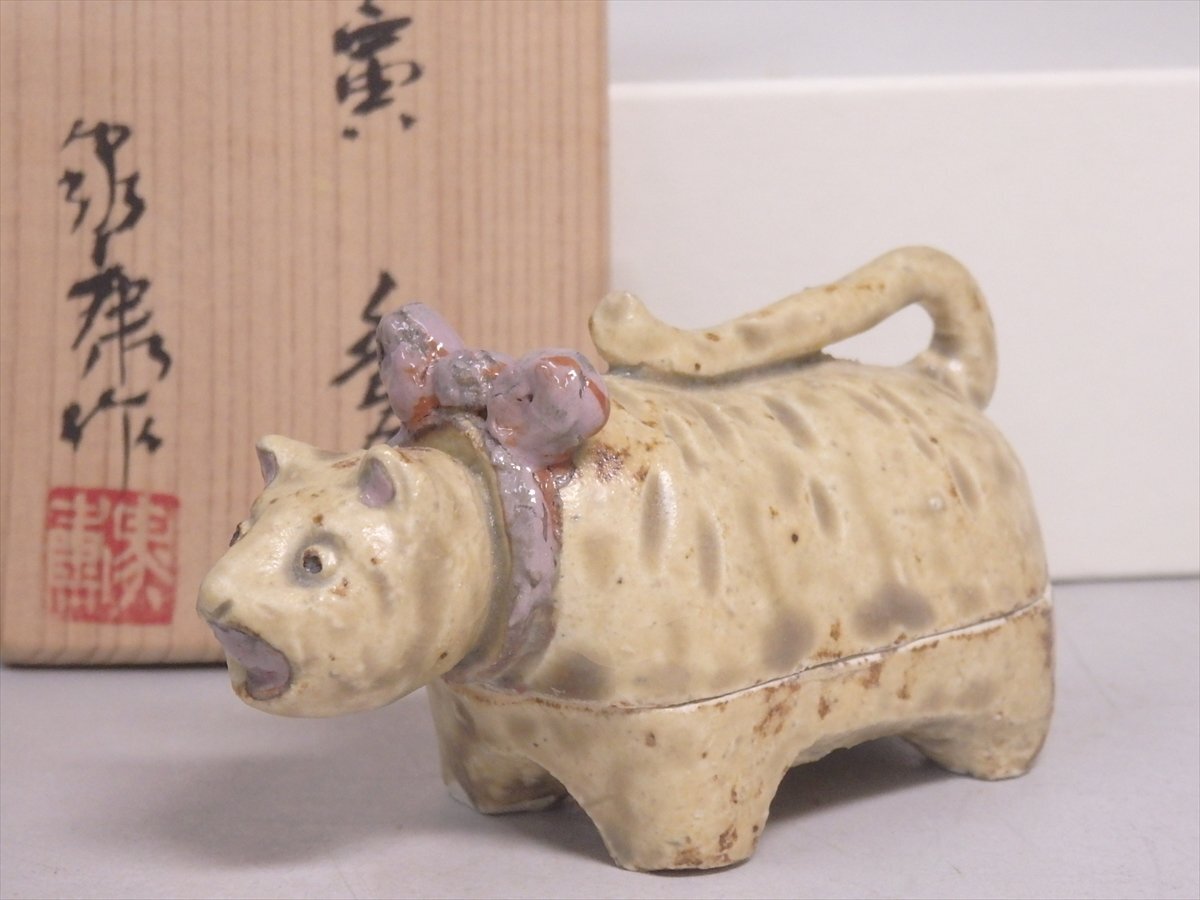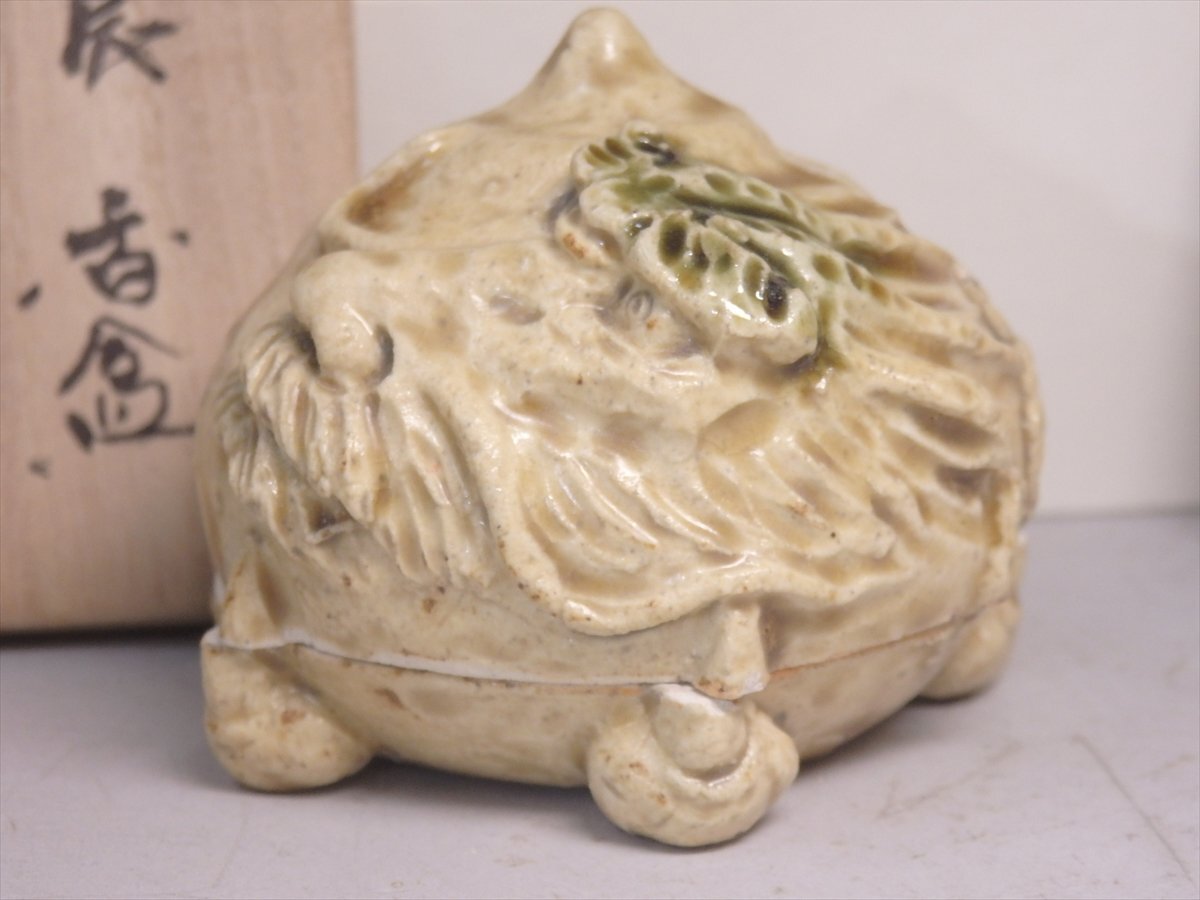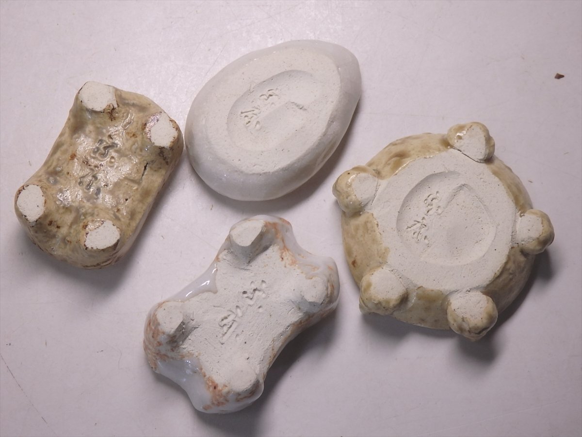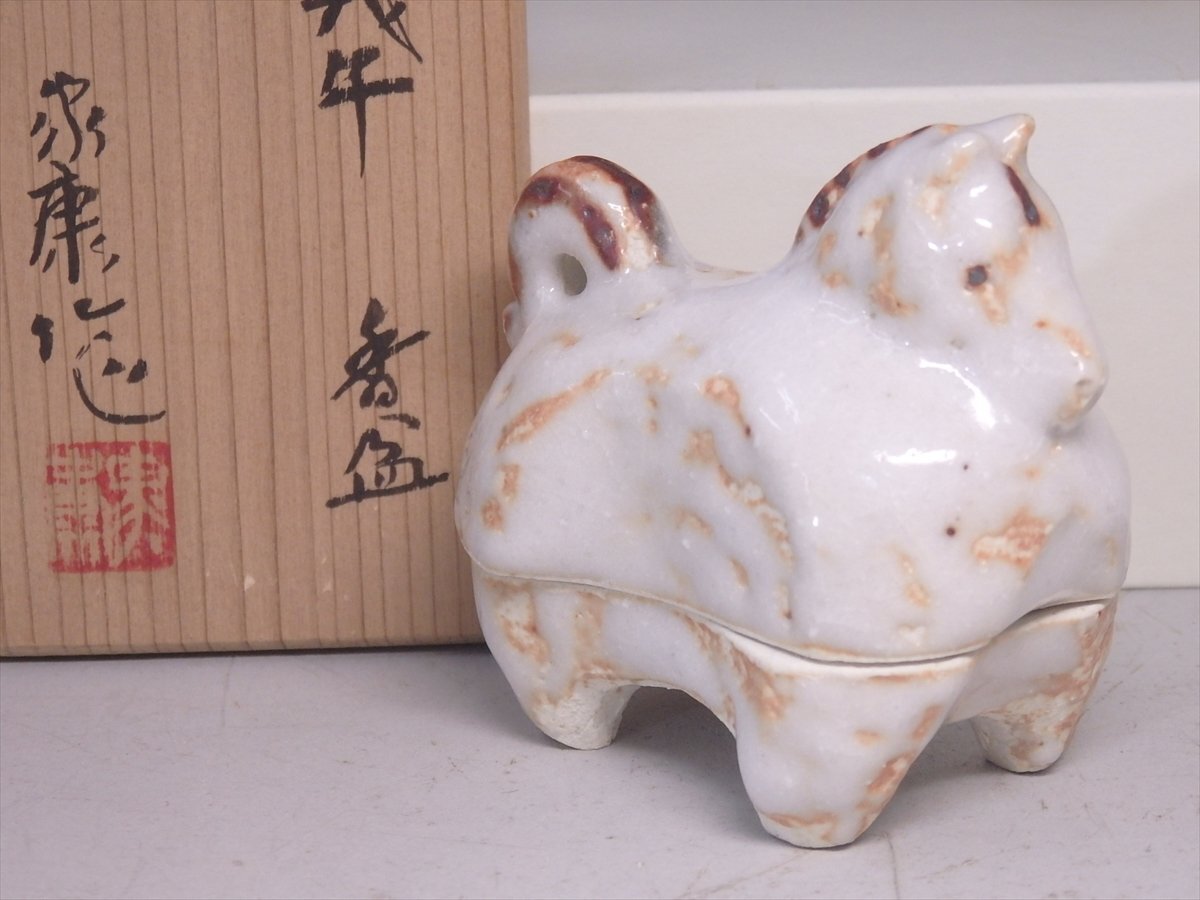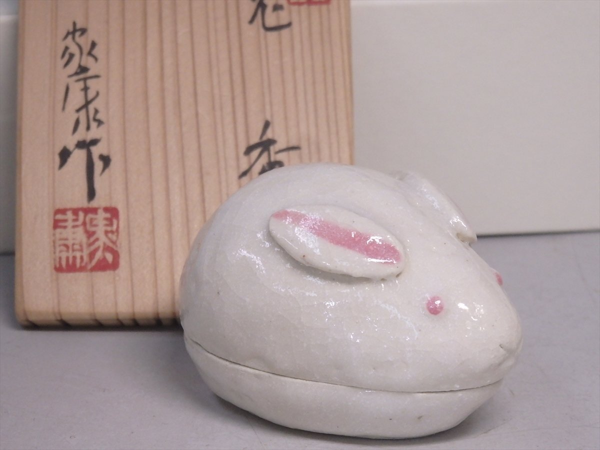 ★状態良好!黄瀬戸ほか【水野家康作 干支香合4個 共箱】寅 卯 辰 午 雪うさぎ:6×4×高さ4cm 茶道具 置物 茶器