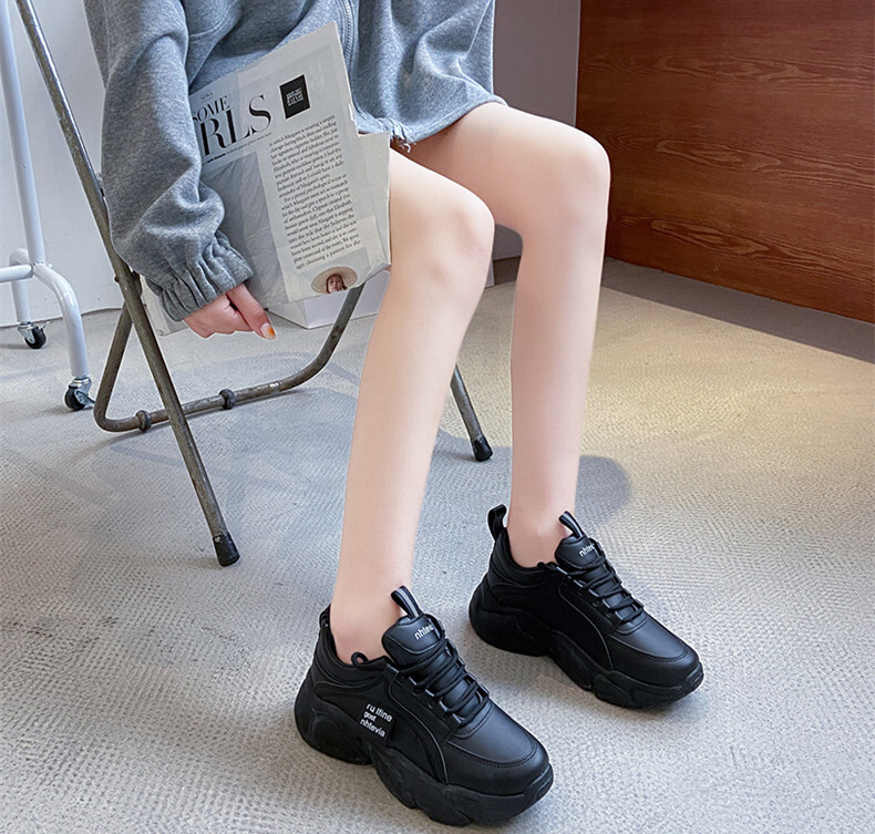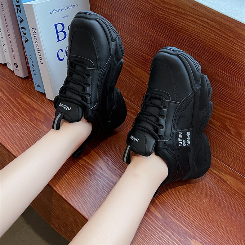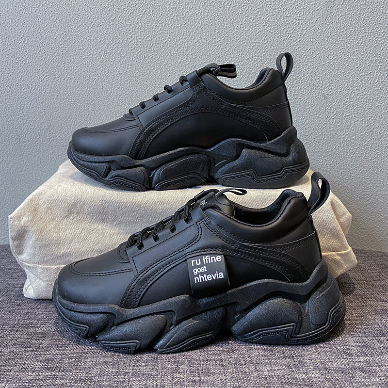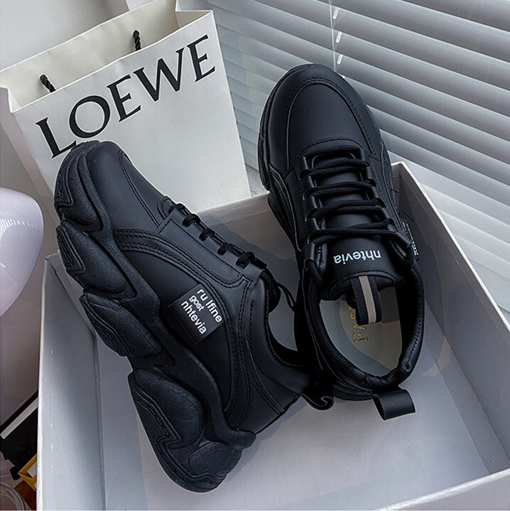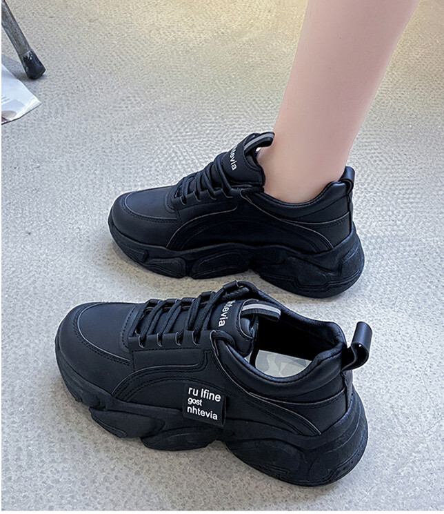 厚底スニーカー ダッドスニーカー 美脚 シューズ 歩きやすい カッコイイ ガーリー スポーティー ストリート カジュアル ブラック 24.5CM