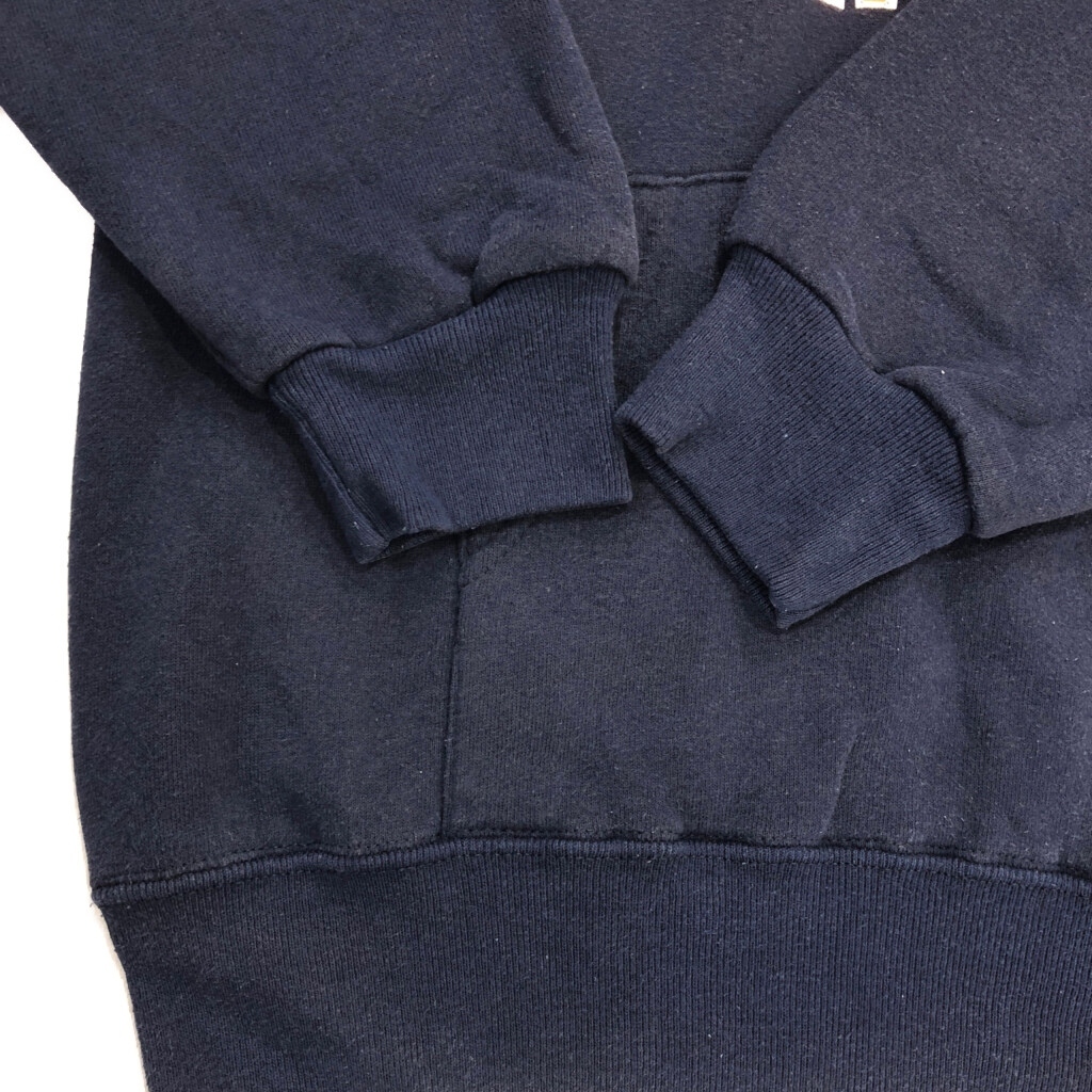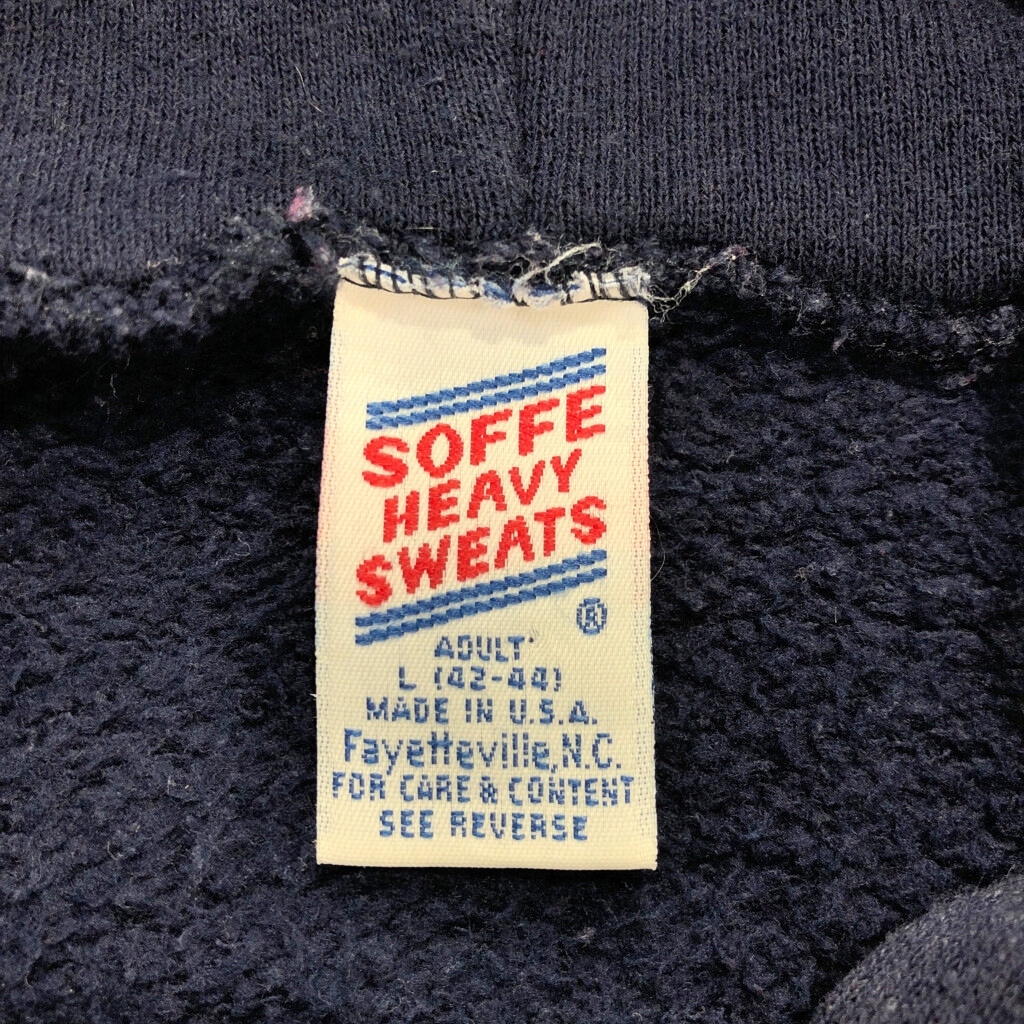 | 【商品管理番号】 V1679 【ブランド】 SOFFE/ソフィー 【サイズ】 L 【実寸サイズ】 肩幅:約53cm 着丈:約67cm 身幅:約57cm 袖丈:約65cm 【主な素材】 表地 : コットン 【色】 ネイビー 【仕様】 生産国 : USA製 90年代 カレッジ 【状態】 特記事項:色褪せ、プリント劣化、毛羽立ち フード紐欠損 | |||