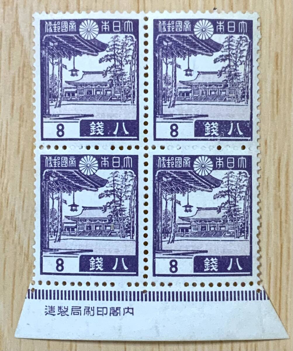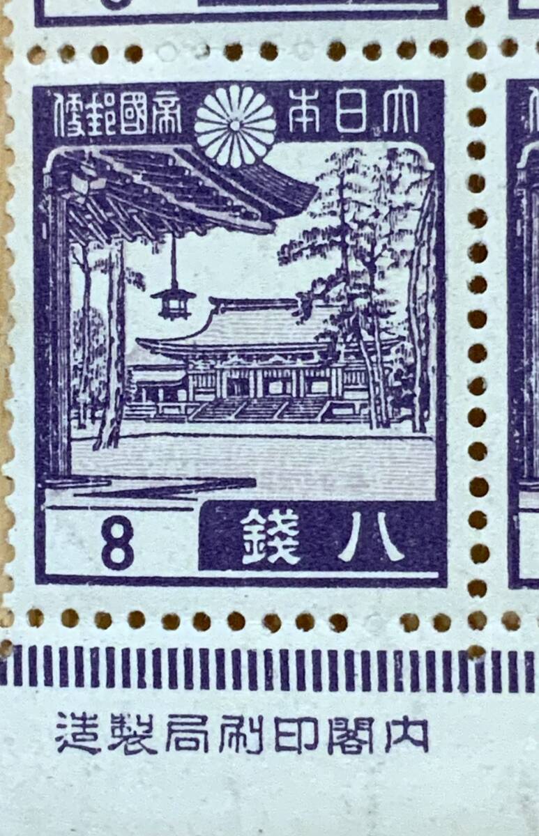 明治神宮 8銭 第1次昭和 未使用 ブロック 銘版付