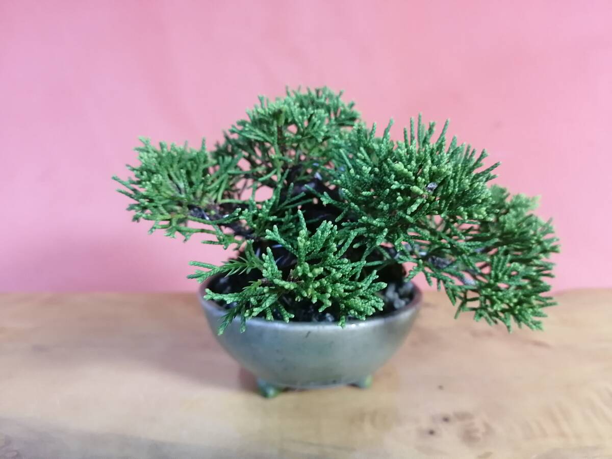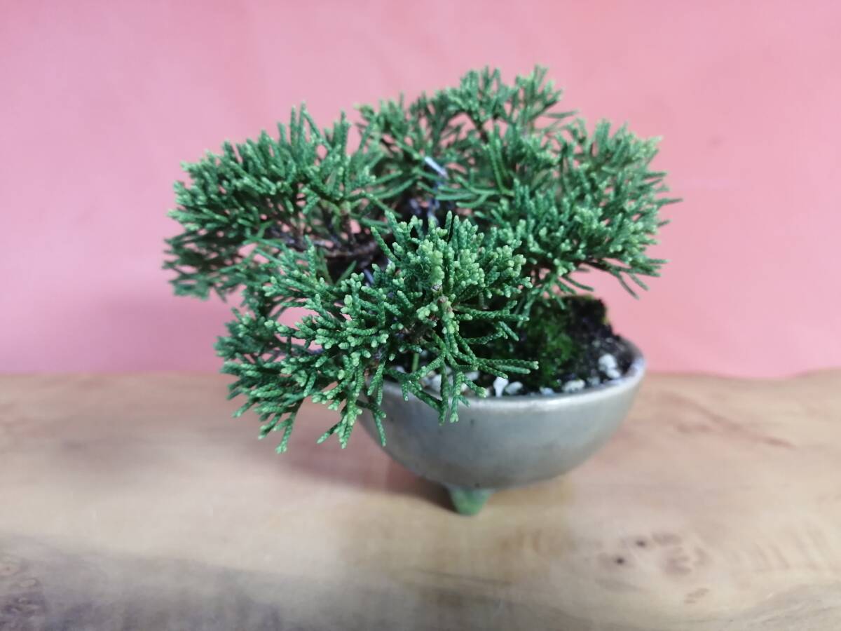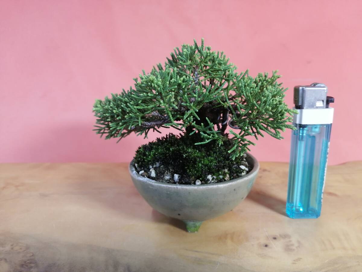 高さ約6cm、横幅約13cm、奥行き約11cm、真柏の挿木苗です、曲げて曲げてどうなっているのか私もよくわからなくなっています、宜しくお願いします。