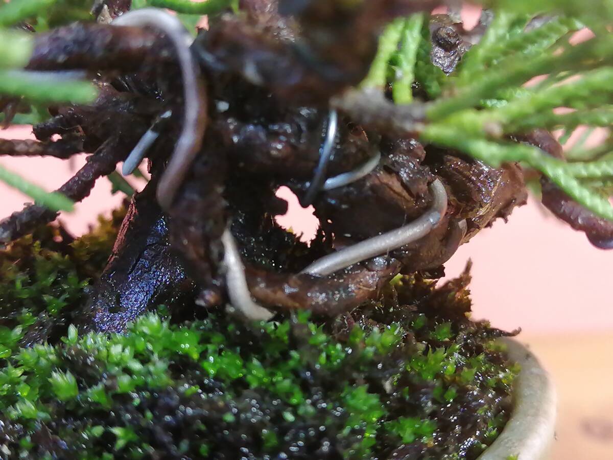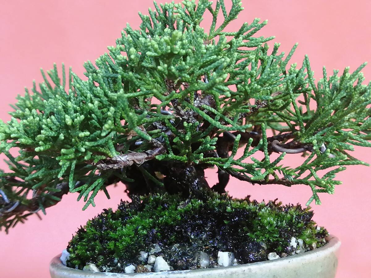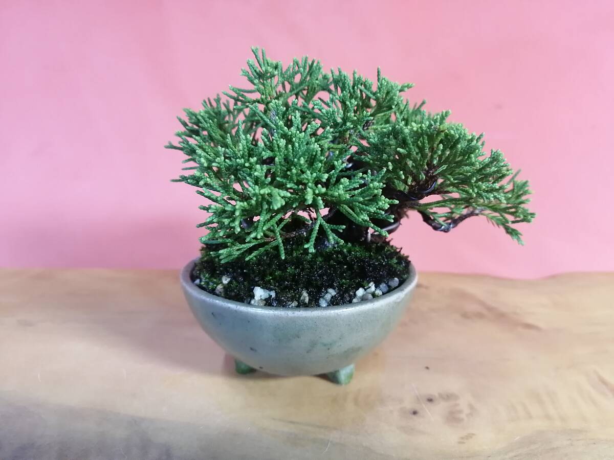 高さ約6cm、横幅約13cm、奥行き約11cm、真柏の挿木苗です、曲げて曲げてどうなっているのか私もよくわからなくなっています、宜しくお願いします。