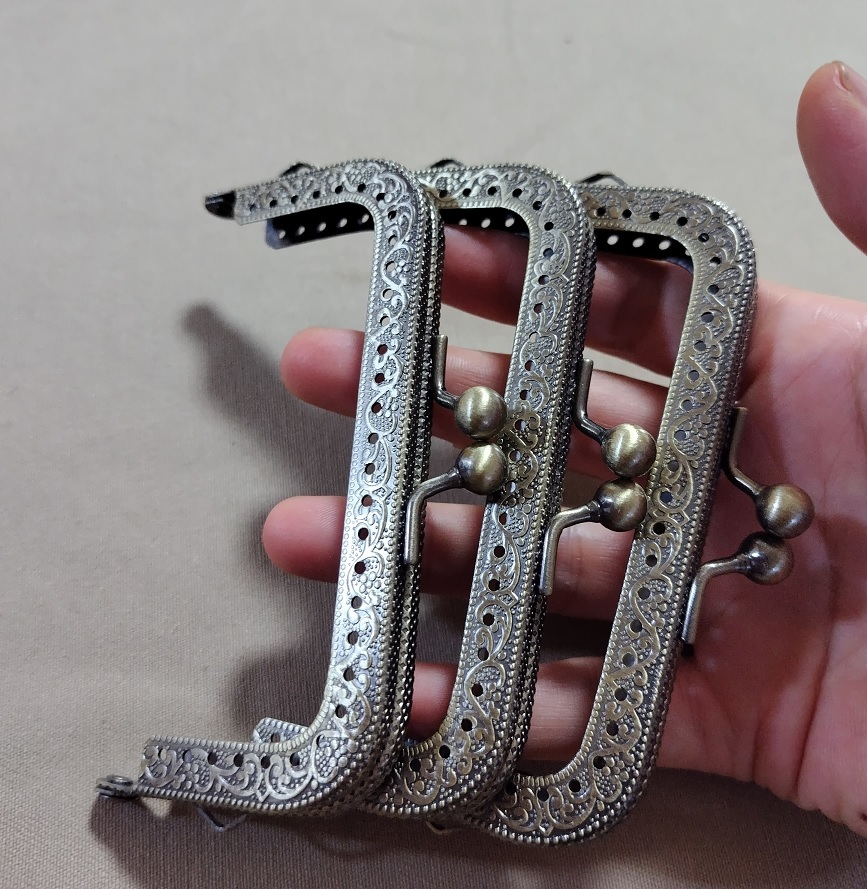がま口口金 縫い付け式 両カン付き 角型 ハンドメイド 幅10.5cm パーツ (3個セット) 古銅美