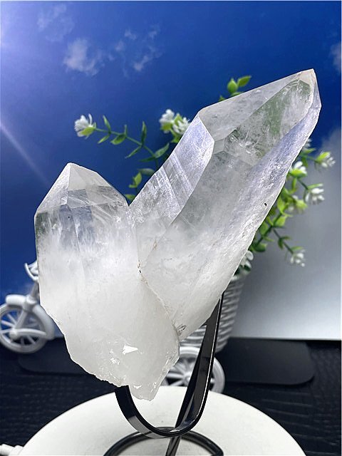 【クリスタルクォーツ(白水晶)】 無色透明の水晶。世界中で最も知られ、その効果は万能とされ、水晶といわると一般にイメージするベーシックな水晶です。その透きとおった姿を見ているだけで、すがすがしい気持ちにさせてくれそうです。 あらゆる水晶の中でも基本となりますので、そのパワーは強力かつオールマイティとされています。