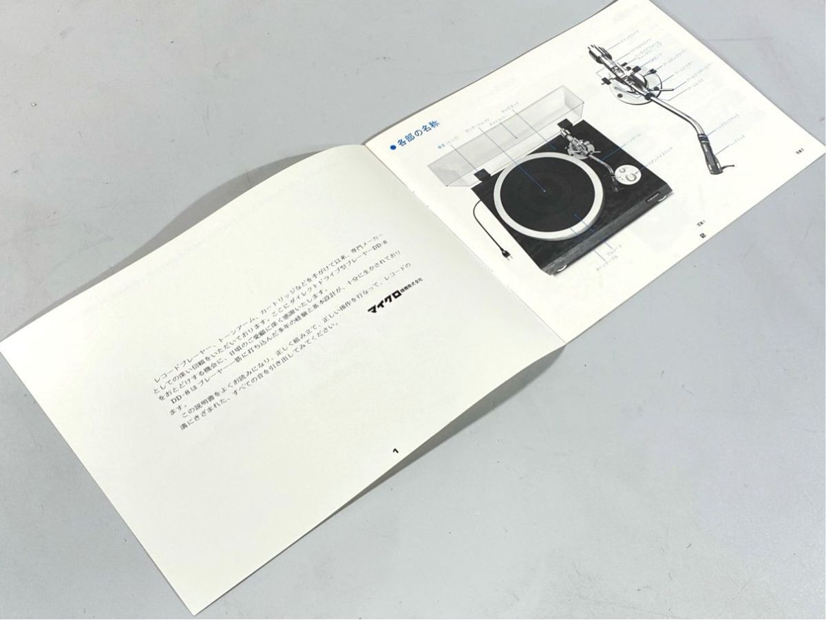 a3622 MICRO マイクロ DD-8 レコードプレーヤー ターンテーブル 用 取扱説明書 原本 マニュアル