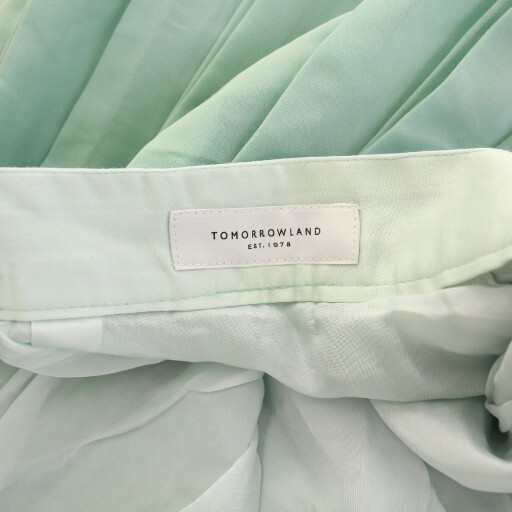 トゥモローランド TOMORROWLAND クリアコットンボイルミディプリーツスカート フレア ミモレ ロング ワンカラー 36 水色