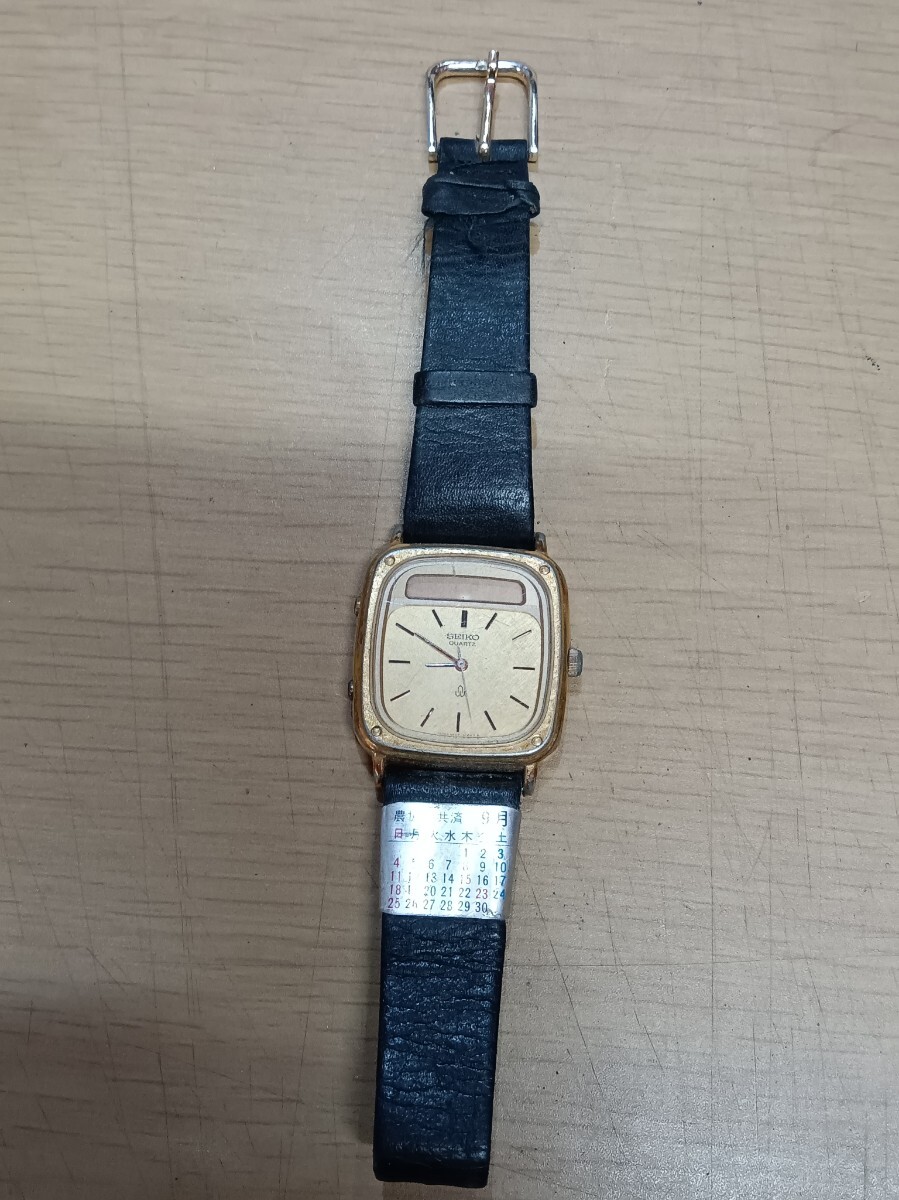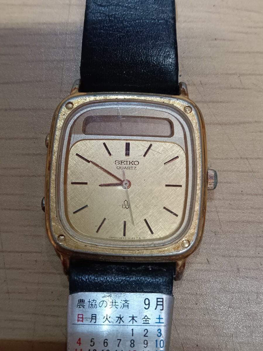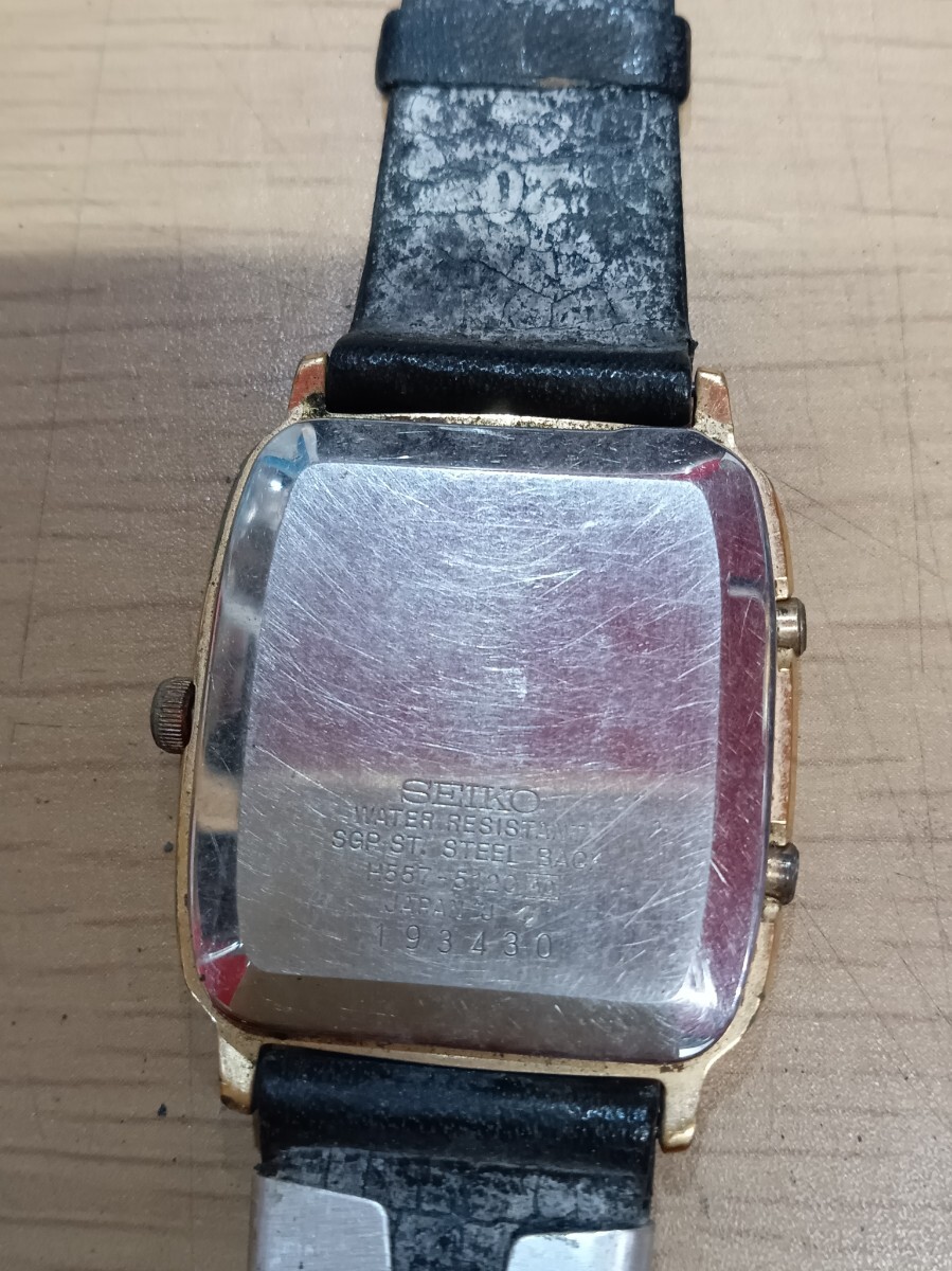 SEIKO メンズ 腕時計 クオーツ アナデジ H557-5120 レザーベルト 電池切れ 動作未確認 ベルト劣化 セイコー ヴィンテージ