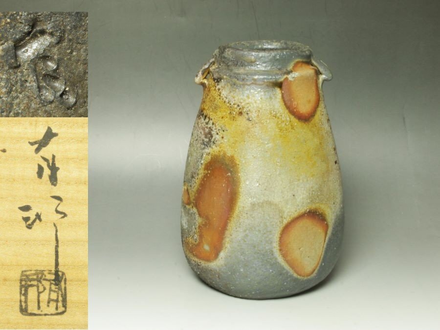 ■三和堂■金重有邦 伊部耳付花入 花生 花瓶 花器 備前 父:金重素山 高22.8㎝ この上ない大名品!!