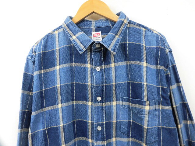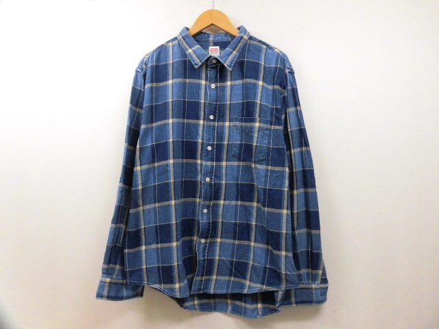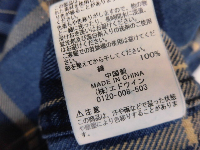 EDWIN エドウィン ET2131 チェックシャツ 胸ポケット 長袖シャツ トップス ブルー 青 XLサイズ
