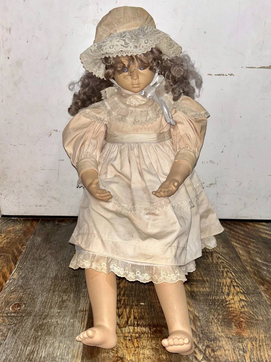 経年保管により汚れ、シミ、スレ等あり。髪の毛の元々のウェーブの崩れあり。