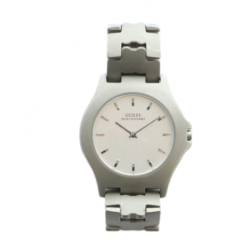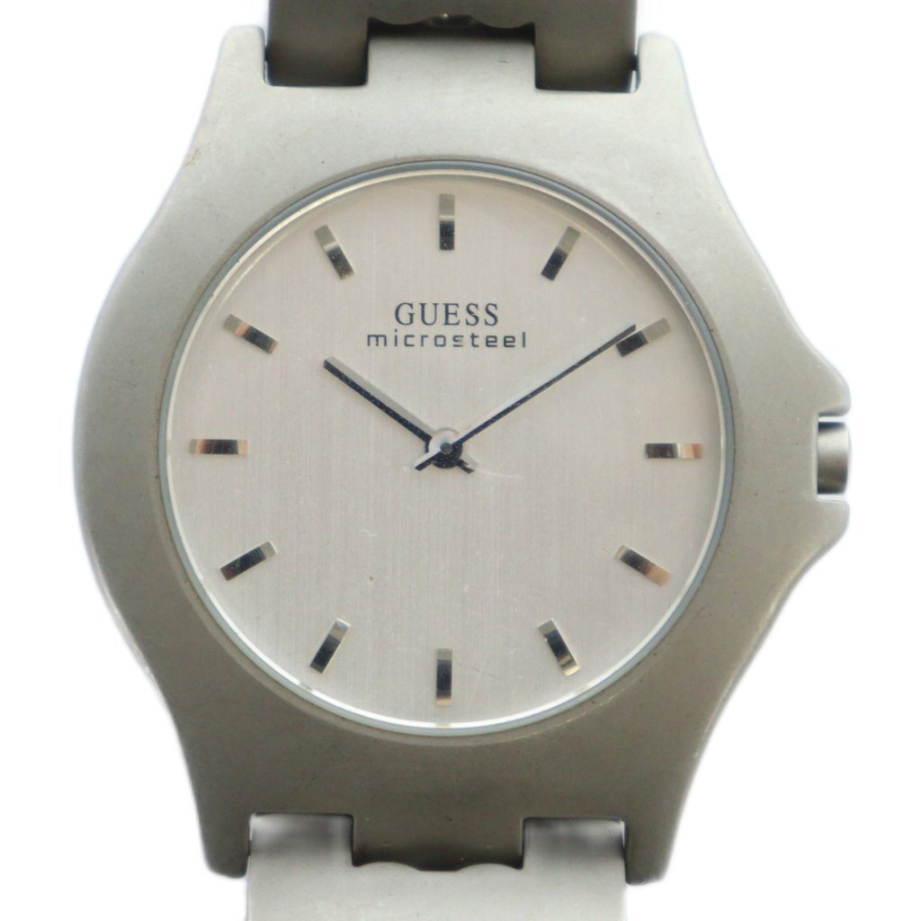 ゲス GUESS ジャンク品 l80178G3 腕時計 microsteel ウォッチ クォーツ ロゴ シルバー色 ■GY18 /MQ メンズ