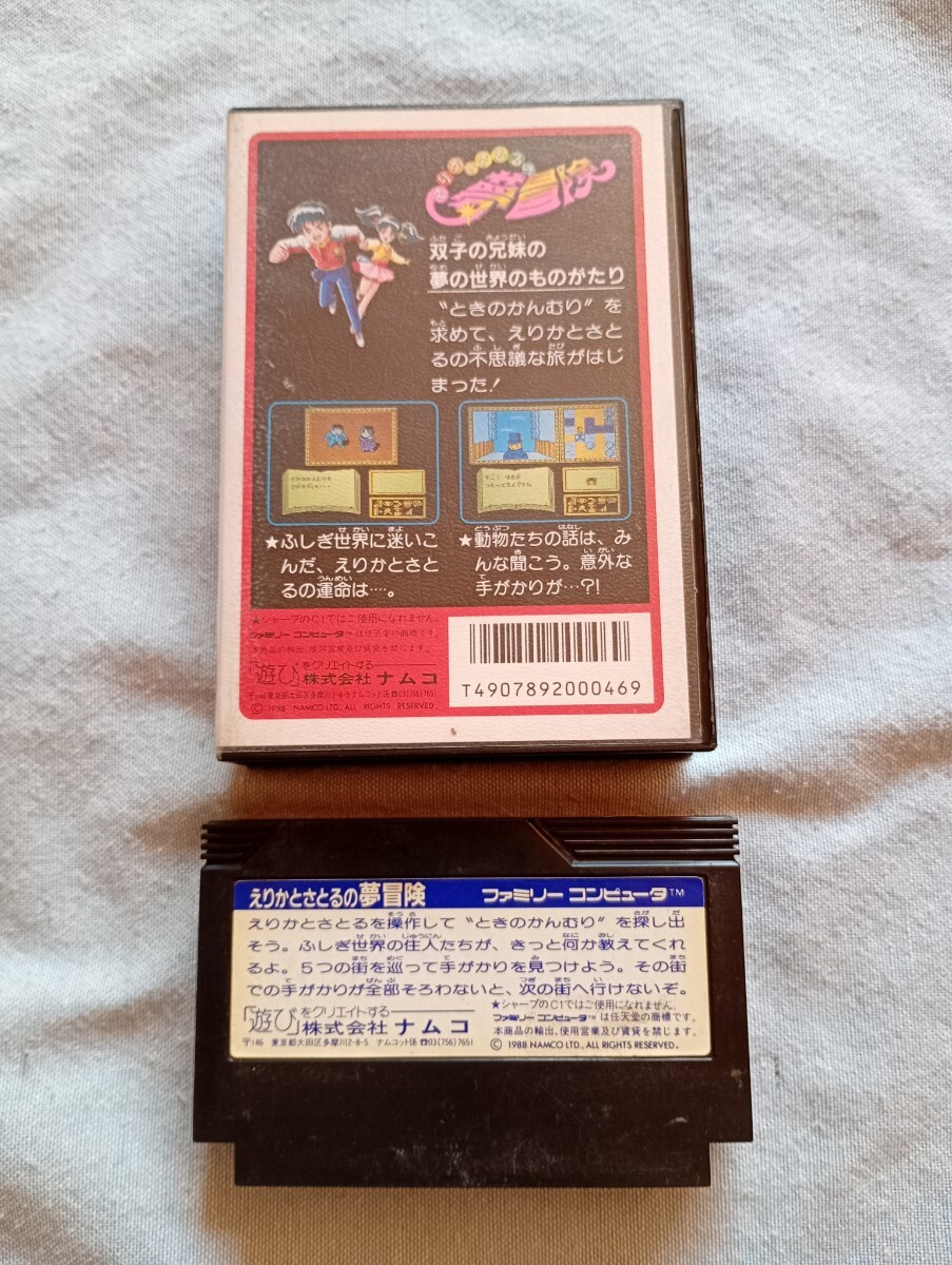 【レアFCレトロファミコンソフト】ナムコ えりかとさとるの夢冒険 アドベンチャーゲーム 箱付き!動作確認済 送料無料