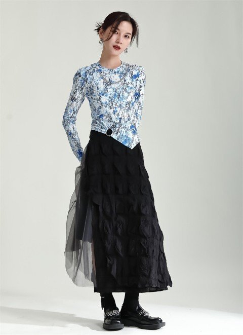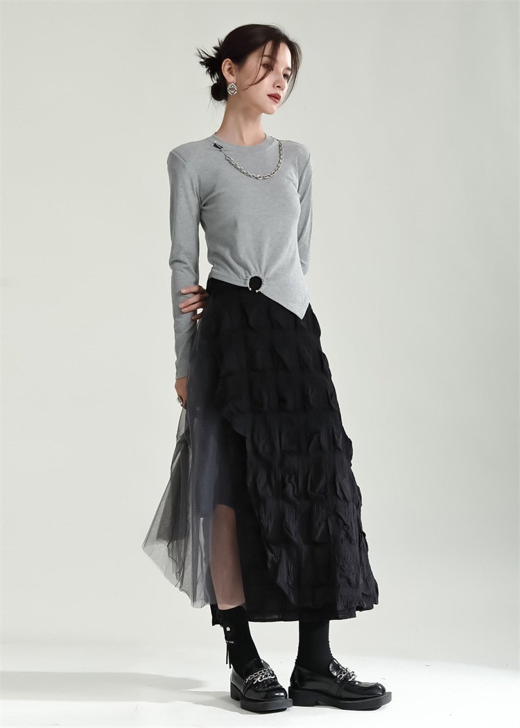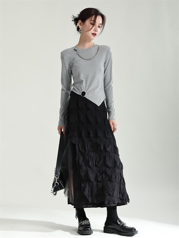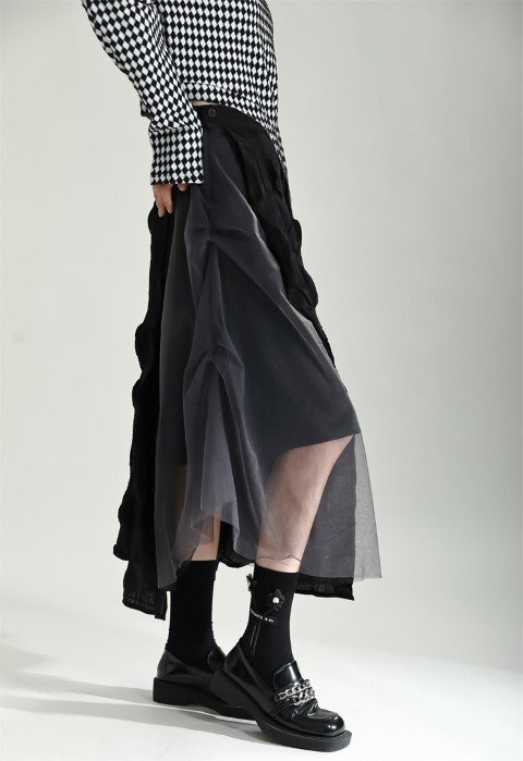 ロングスカート フリルスカート Aラインスカート かわいい お出かけ レディース L ブラック