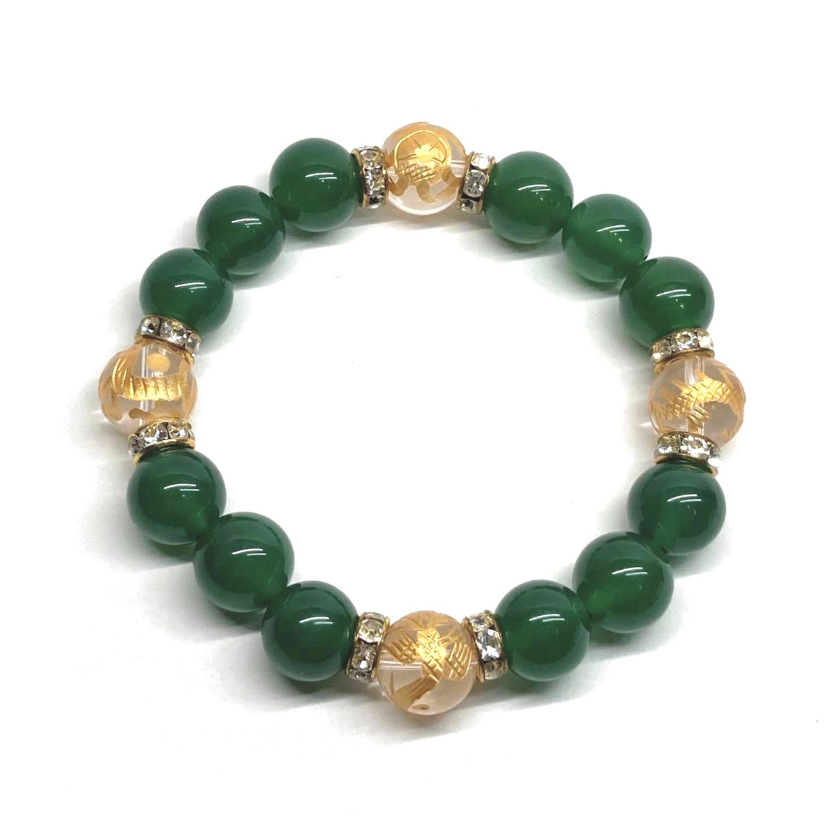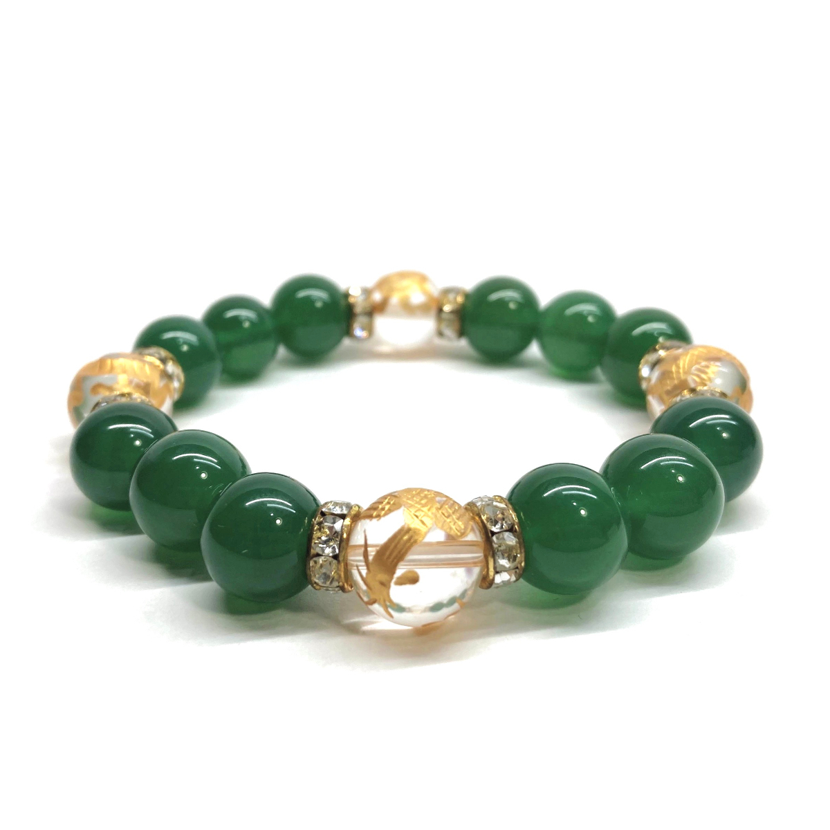 四神獣金彫水晶×緑瑪瑙 12mm パワーストーン ブレスレット天然石 青龍 白虎 玄武 朱雀 運気上昇 お守り 金運 健康運 四神獸 四神相応 G