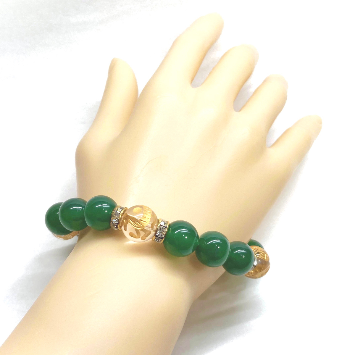 こちらは、四神獣金彫水晶と緑瑪瑙を組み合わせたパワーストーンブレスレットです。四神獣は、中国の伝説で4つの方向(東西南北)を守護する神聖な神。四神獣、厄災から身を守り、多くの運気を呼び込むと言われております。石大きさは程よくインパクトのある12mm玉で内周 約17cmです。 数に限りがございますので気になる方はお早めにどうぞ。