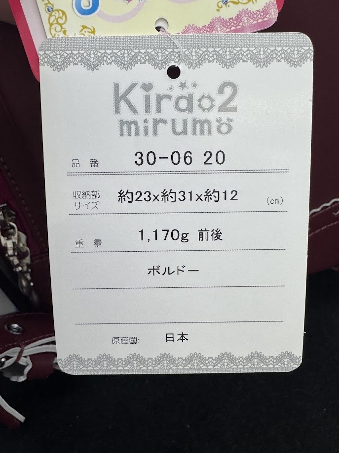 | ■未使用 保管品 キラキラ ミルモ ランドセル ボルドー カバー付 Kira×2 mirumo 日本製 | ||