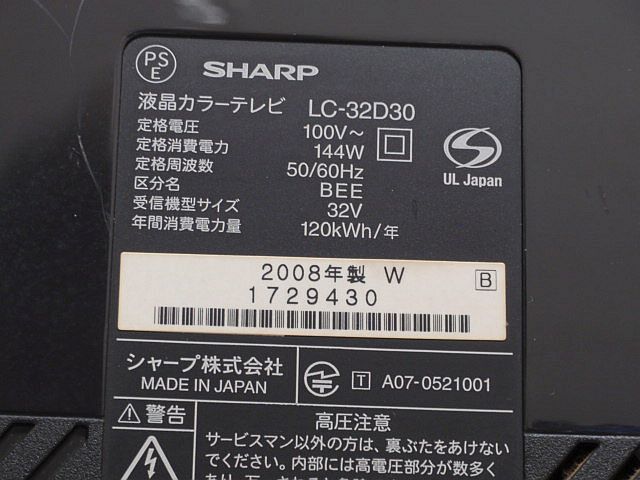 ●2008年製のUSED品になります。 ●多少のキズ・ヨゴレ・使用感があります。 ●付属品は、ACコード・B-CASカード・リモコンになります。 ※リモコンは、おまけ程度になります。 ●電源は入り、次の動作は確認済みです。 ※地上/BS/CSデジタル放送は、設定・受信できました。 ※HDMI/RGB入力時の動作を確認しました。 ※主観ですが、映像は非常にキレイでした。 ●長時間の動作/細かい機能につきましては、チェックできていません。 ●他にも当方が認識していない問題があるかもしれません。 ●以上をご理解のうえ、ノークレーム・ノーリターンでお願いします。 . |